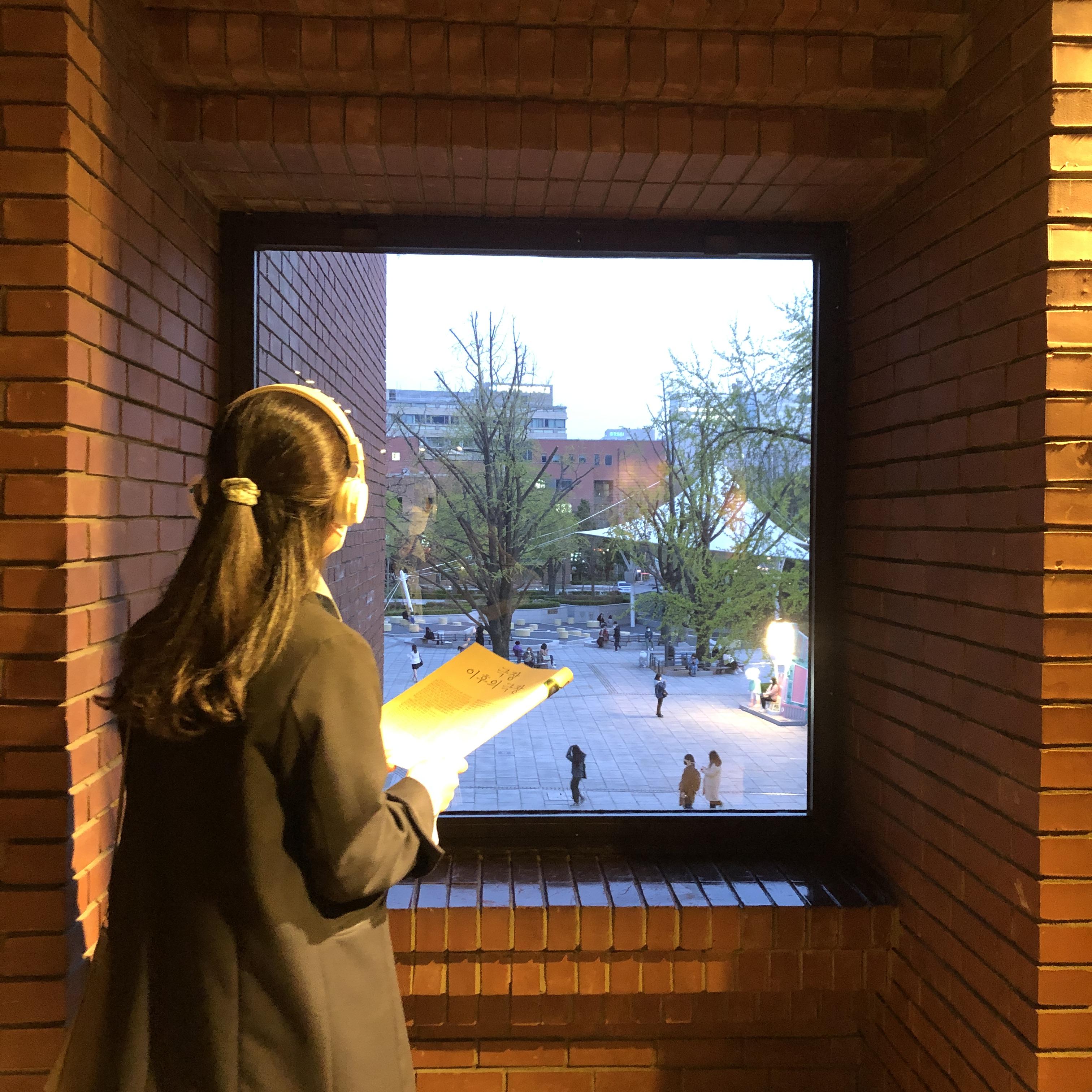 2층은 오디오를 들으며 밖을 내다볼 수 있는 창문도 있었습니다. 새(아마 비둘기?)와 이야기를 하는 독백이 참 인상적이었습니다.