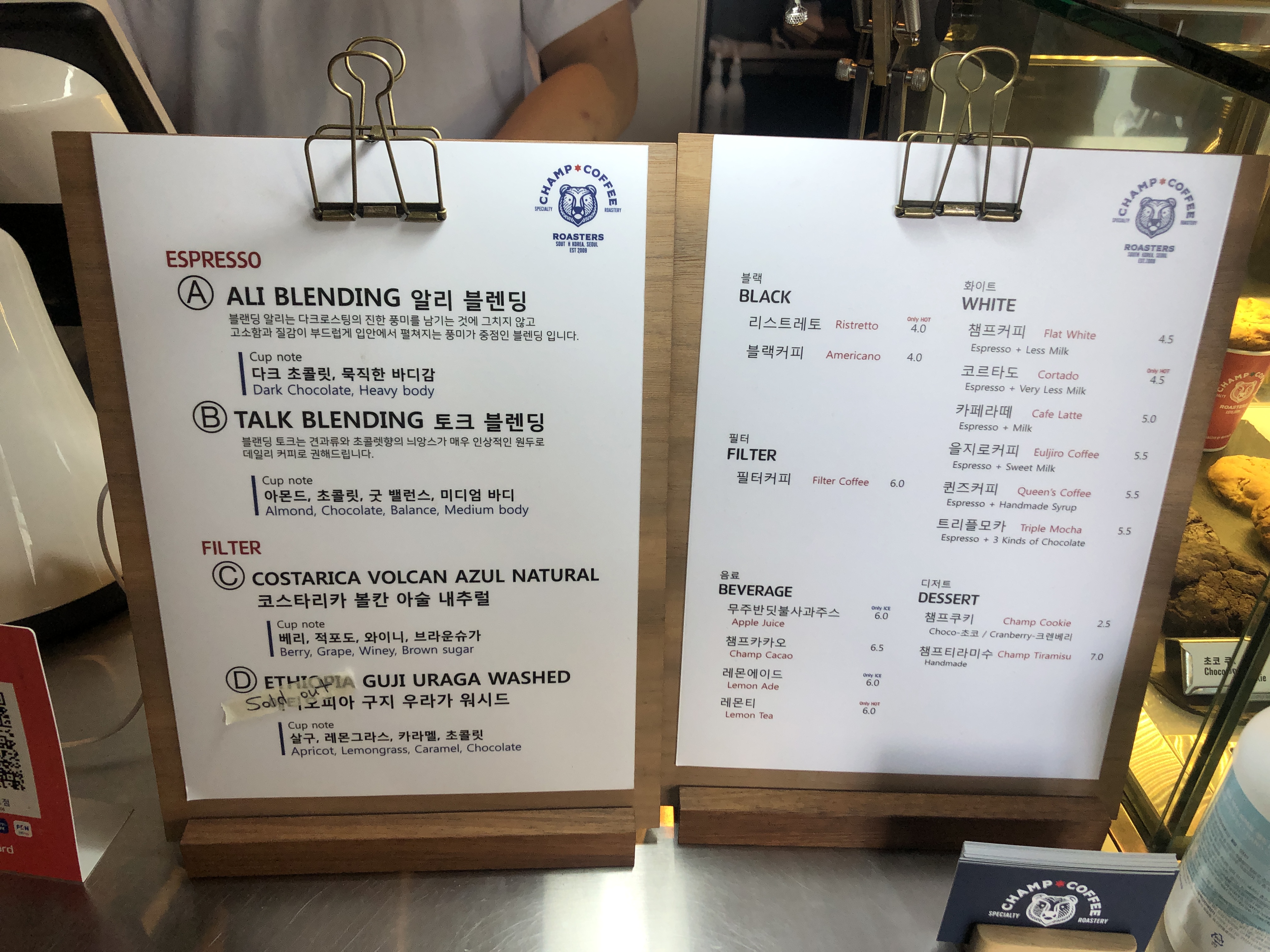 디저트 메뉴도 간소했습니다. 쿠키와 티라미수만 있더라고요. 저는 선택의 폭이 많은 것보다 시그니처 메뉴 몇 가지만 제대로 하는 집들을 더 좋아해서 상당히 좋은 인상을 받았습니다. #CHAMPCOFFEE