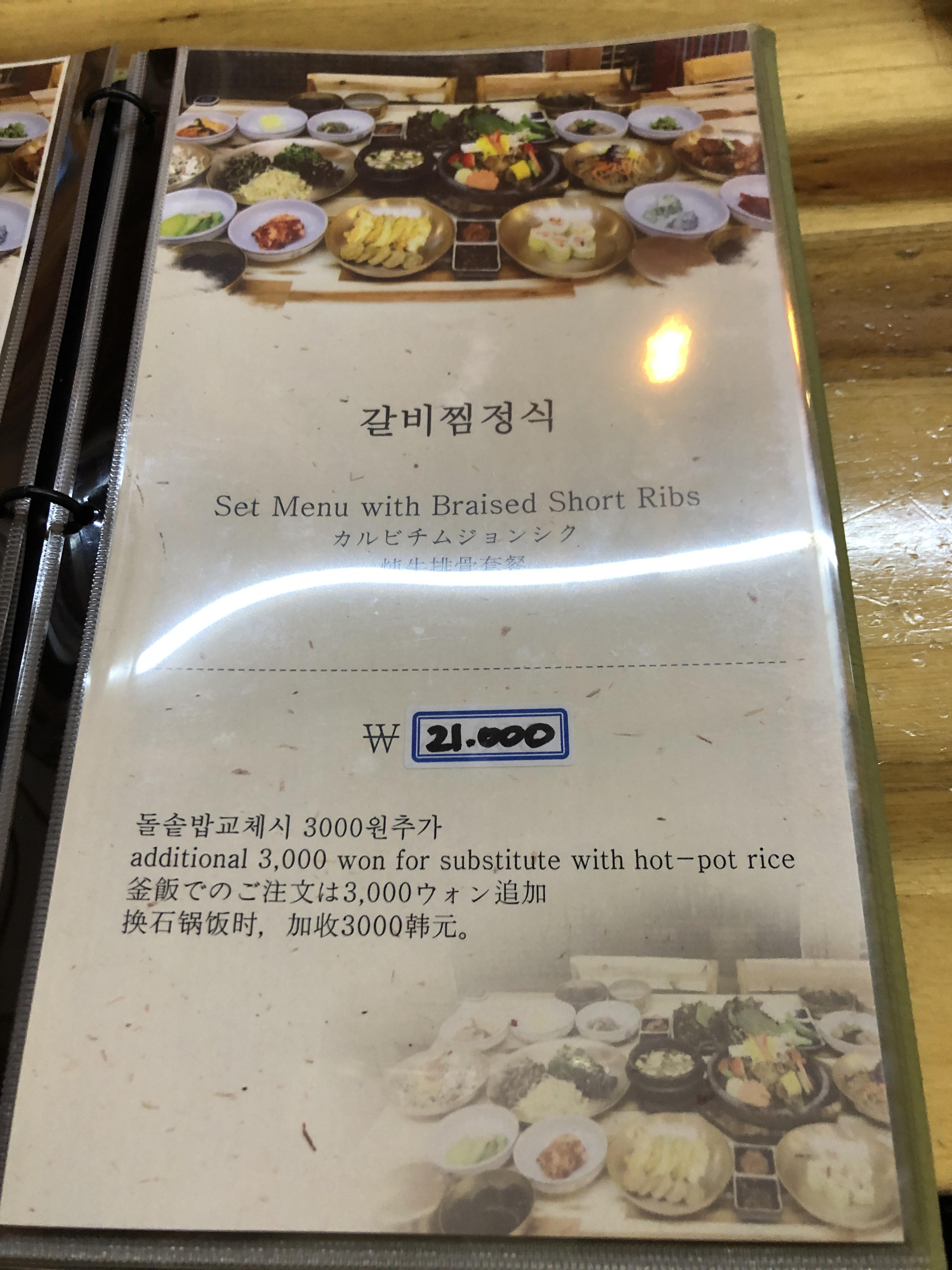 저희는 갈비찜 정식으로 3인 주문하였습니다. 저희는 돌솥밥으로 변경하지 않고 기본 제공되는 공깃밥으로 먹었습니다. 주문하자마자 음식이 나오기 시작했습니다. 음식을 기다리지 않아도 돼서 좋았습니다. 무척 배고픈 상태였거든요.