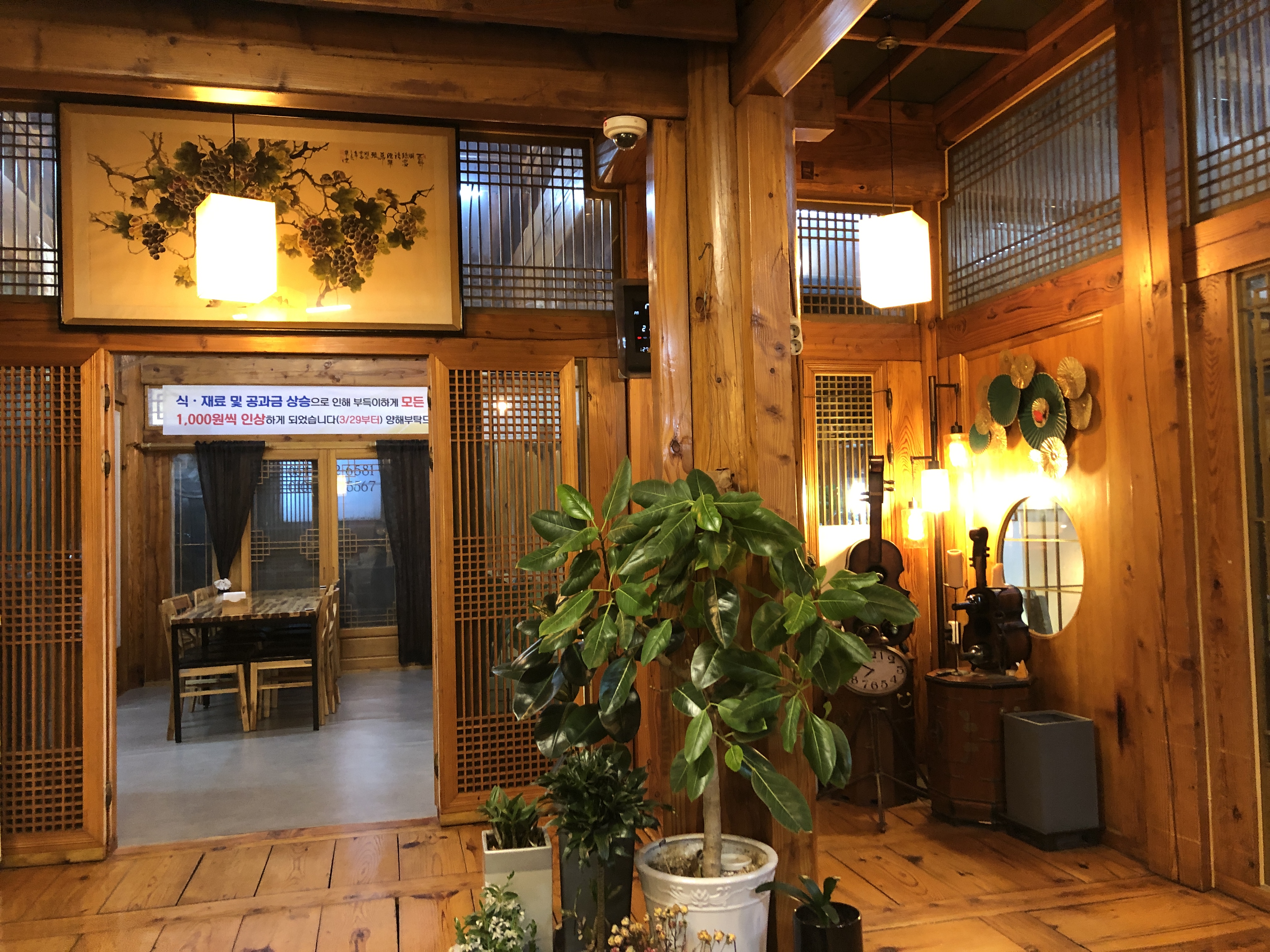 옛정은 한옥 건물이었습니다. 한정식집이라 한옥 분위기가 더 잘 어울리는 것 같았습니다. 그리고 신발을 벗고 들어가는데요. 좌식 테이블도 있지만 저희는 입식 테이블로 안내받아서 좋았습니다.