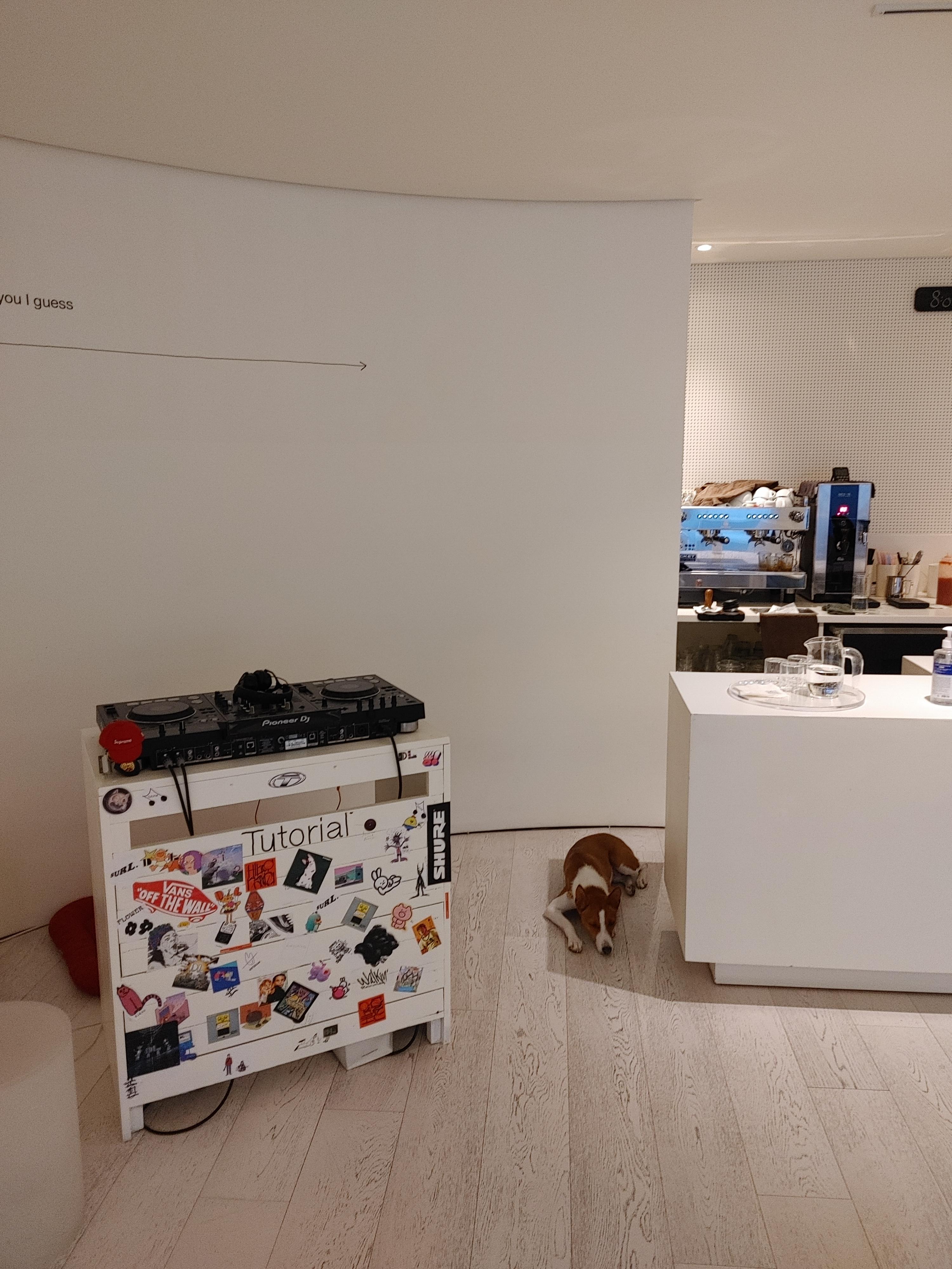 튜토리올 매장은 화이트 인테리어이다. 상당히 심플하고 세련된 느낌이 풍기는 공간이다. 그리고 이곳에는 마스코트인 강아지가 있었다. 우리를 잘 따르지는 않았지만 정말 귀여웠다. #서울카페추천 #카페투어