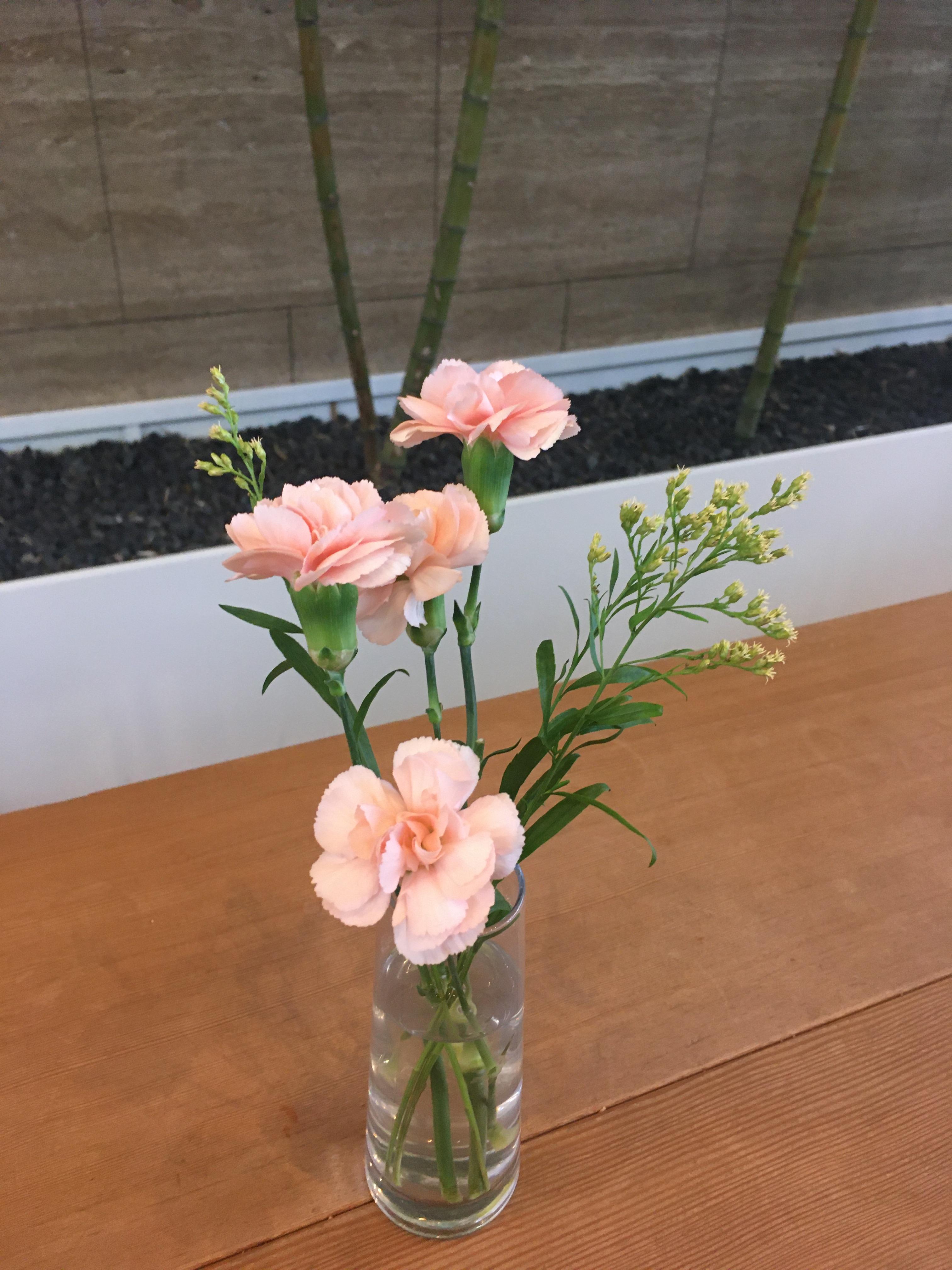 포비는 테이블 곳곳에 예쁜 꽃들이 있었다. 싱그럽고 예뻐서 눈이 즐거웠다. 우리가 앉은 테이블에는 커다란 물병에 담긴 나무(?)가 있었는데 신기했다.