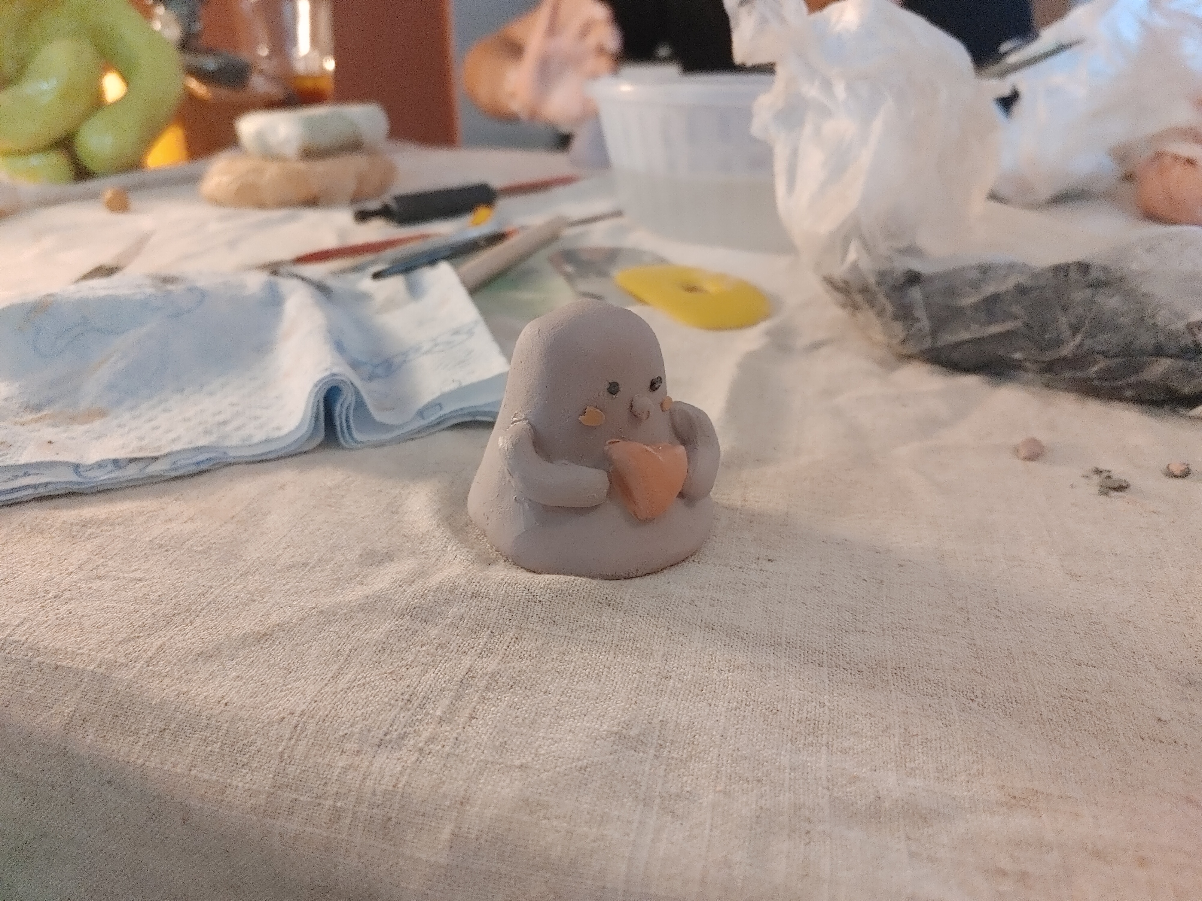 다른 게스트님들의 작품을 보니 정말 다들 금손이라 놀라웠습니다. 슈니따님께서 도자기 만드는 방법을 친절하게 알려주셨지만 생각보다 쉽지 않았습니다. 그래도 뭔가 완성을 하긴 했습니다. 오늘 만든 오브제는 건조를 거쳐 가마에 구워진다고 합니다. 약 5주 뒤쯤 나의 감정 오브제를 만나볼 수 있다고 합니다.
