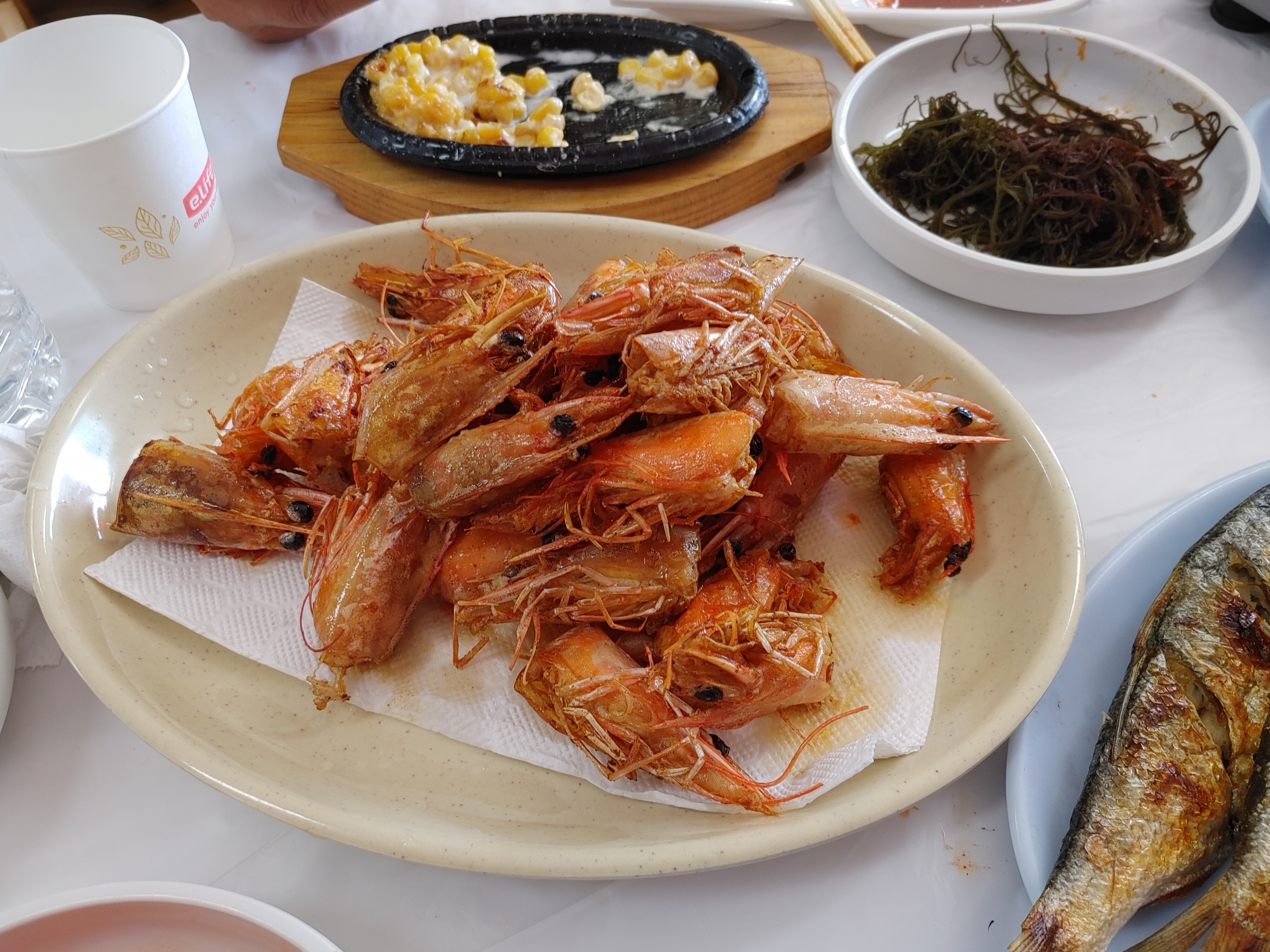 대하 머리는 추가 요금을 내고 튀겼다. 원래 대하 머리 절대 안 먹는데 튀기니까 맛있더라. 머리 껍데기만 벗겨서 야무지게 먹음.