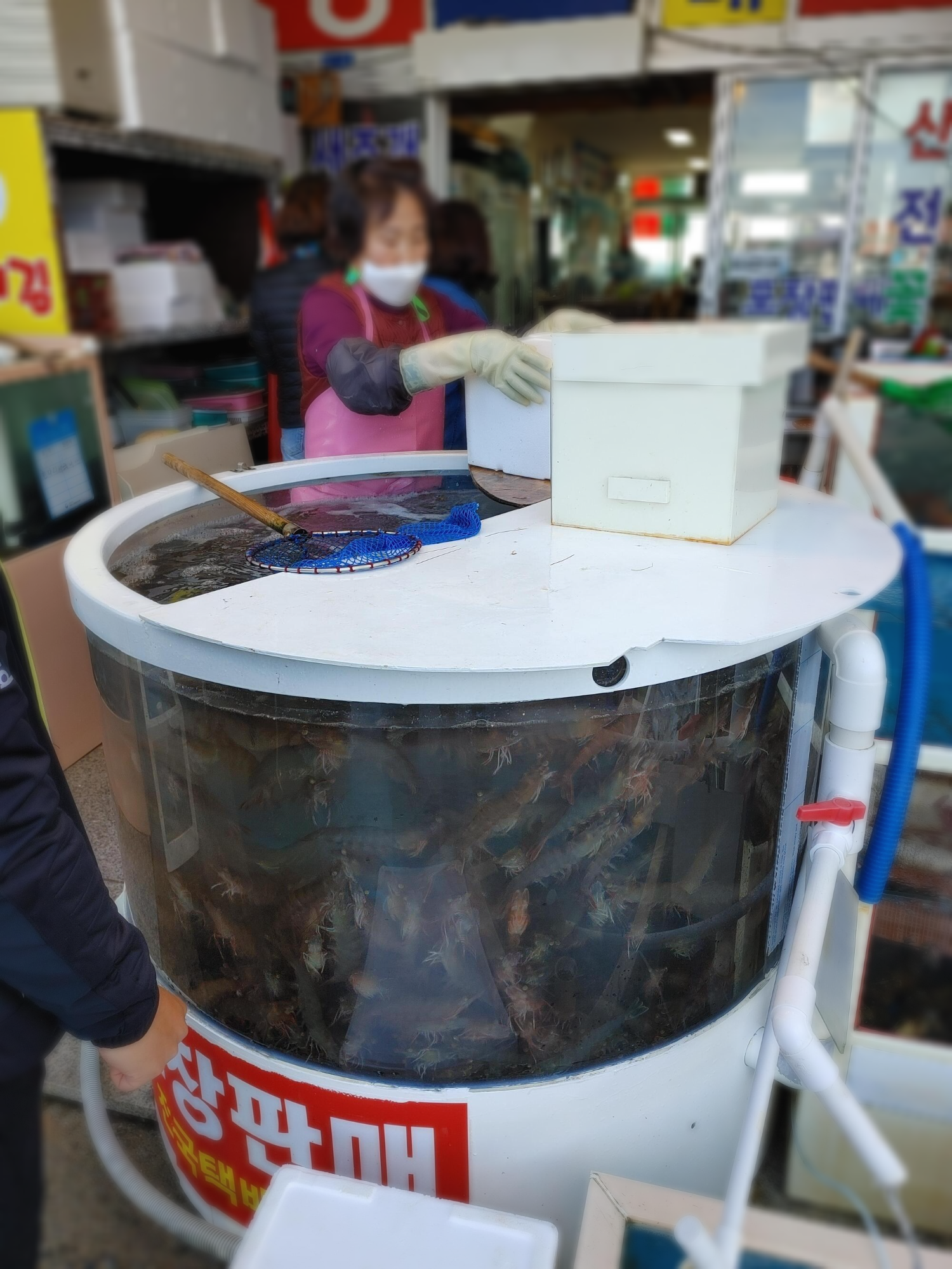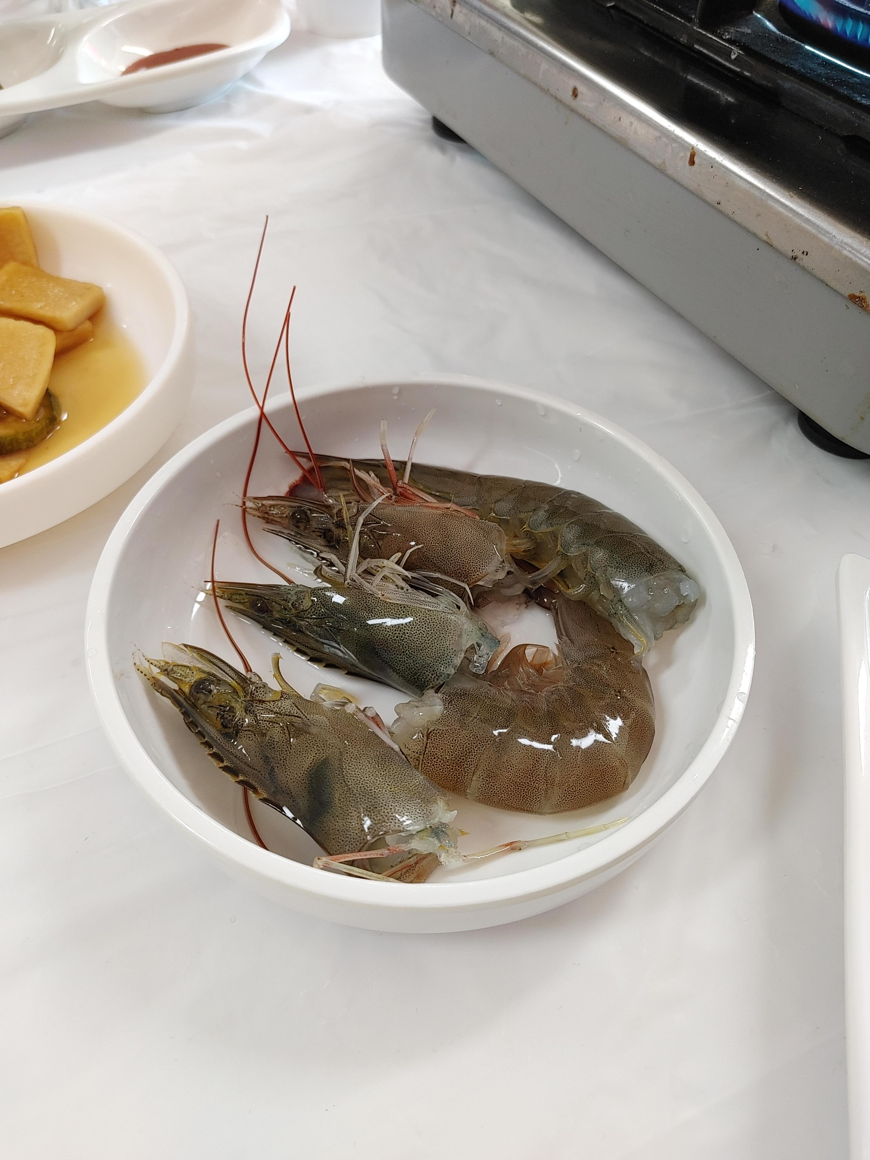 생새우 3마리를 뚜껑 열어서 꺼냈는데 대하들이 너무 파닥거려서 꺼내기 좀 힘들었다. 양식 대하들도 사이즈가 꽤 크고 무엇보다 살아 있고 싱싱해서 좋았다.