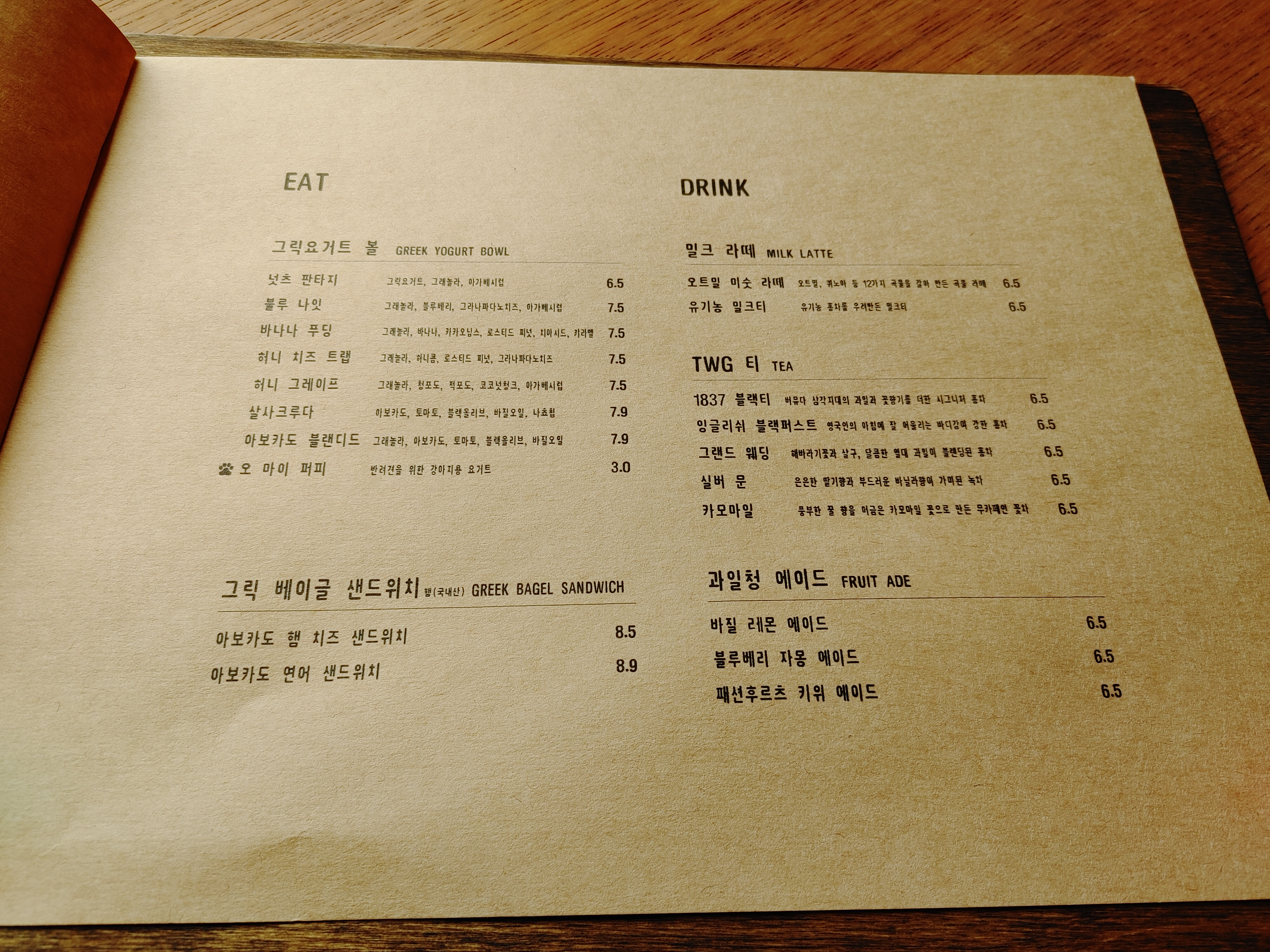 메뉴가 전부 여자들이 좋아하는 메뉴여서 그런지 손님이 여자들밖에 안보였다. 우리 일행도 둘 다 여자였음. 커피가 없다는 점은 조금 아쉬웠지만 우린 땡스오트에서 식사를 하고 카페는 따로 갈 예정이어서 괜찮았다.