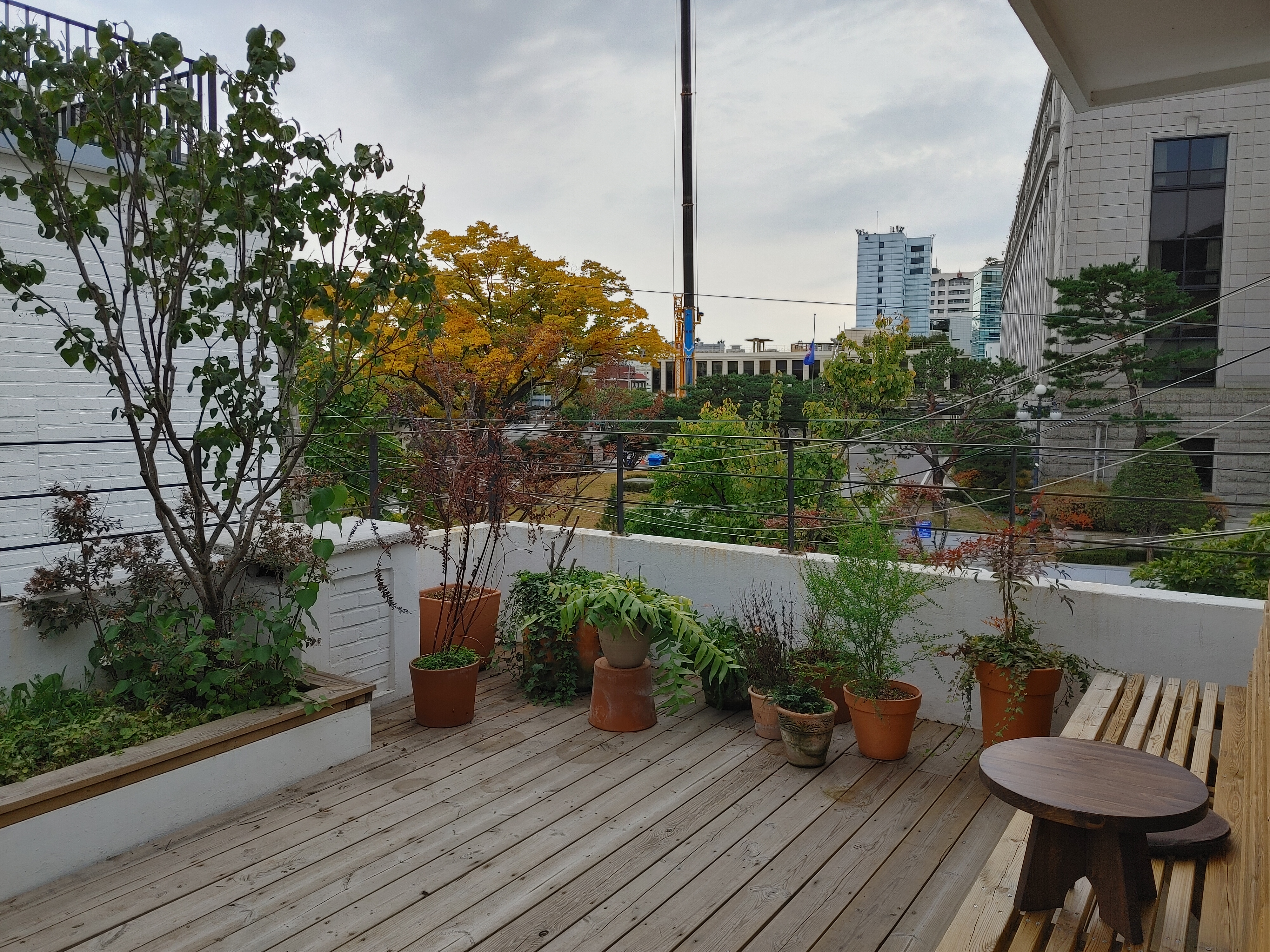 땡스오트 안국점은 하얀색 2층짜리 단독 건물이었다. 내부는 우드톤으로 통일되어 있고 예쁜 식물들이 가득했다. 창문이 크고 많아 탁 트인 느낌이 좋았고 아기자기 예쁜 공간이었다. 날 좋은 날 방문하면 햇살 맛집, 셀카 맛집일 듯!ㅎㅎㅎ