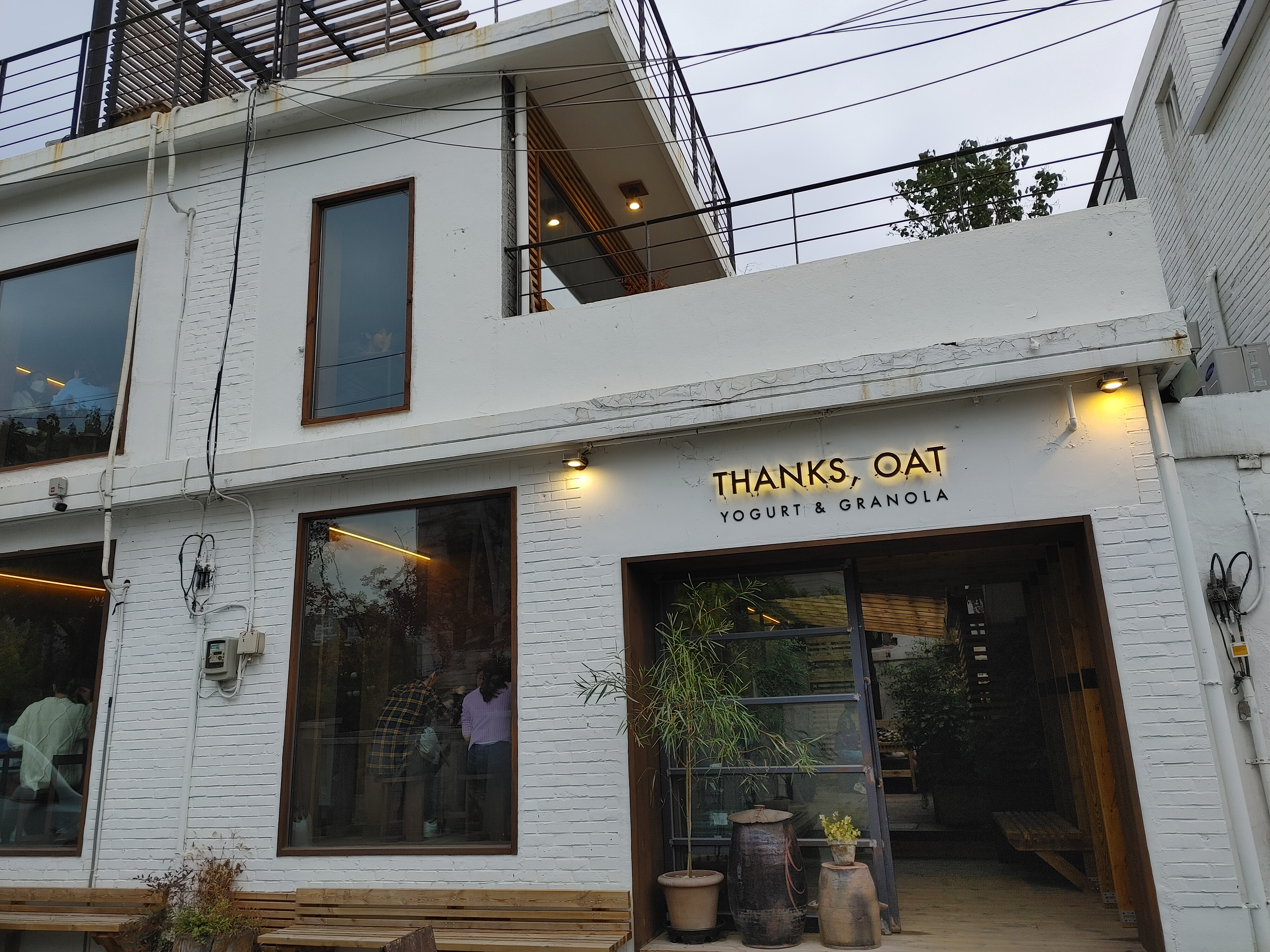 땡스오트는 사람과 동물, 환경을 생각하는 가치관을 가지고 있다. 사람에게는 건강한 음식을, 환경에는 과대 포장을 줄이고, 다회용기를 사용함으로써 도움이 되려고 노력한다. 동물도 생각하는 곳인 만큼 반려동물 동반도 가능하다.