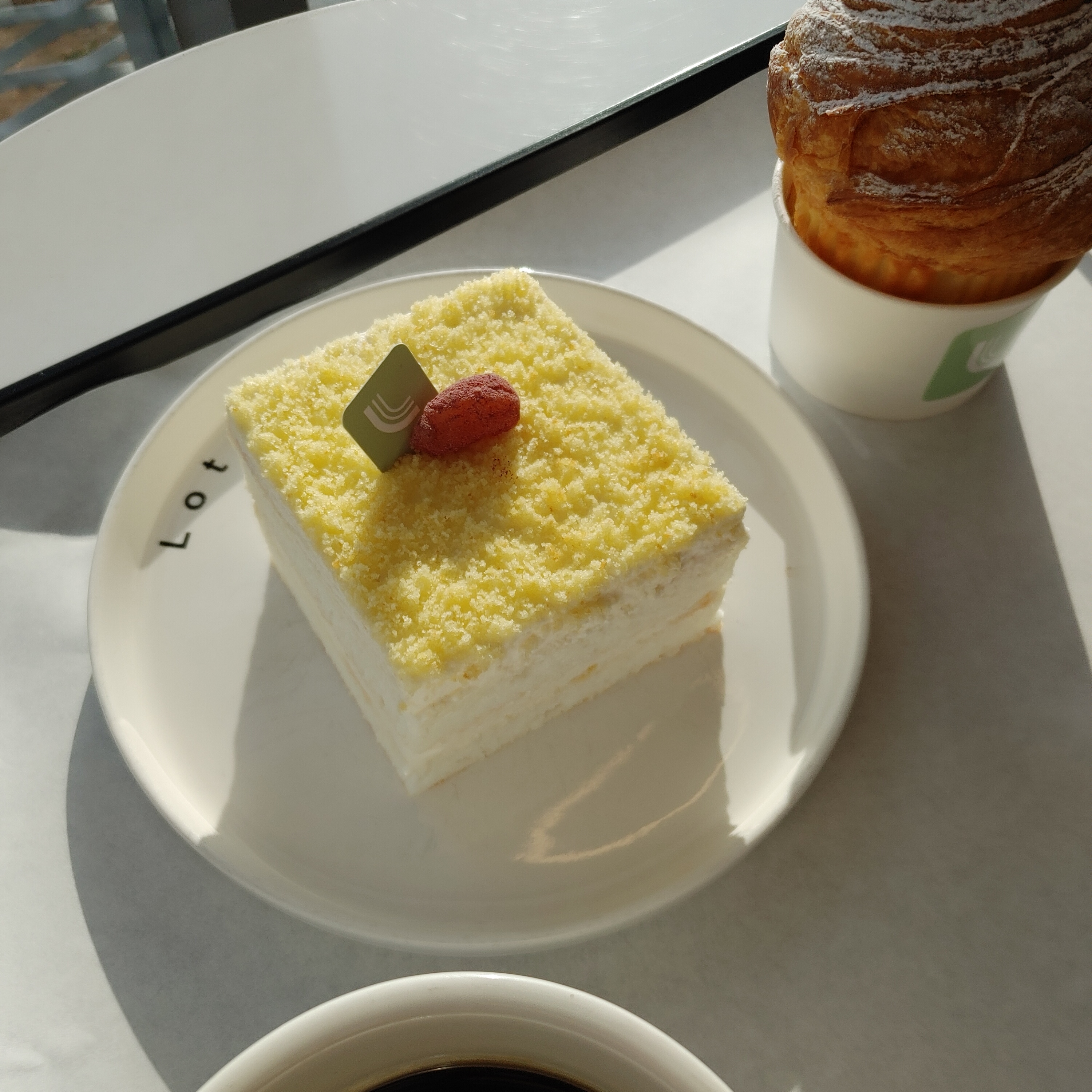 2층 건물에 루프탑까지 있는 꽤 큰 규모의 카페였다. 이날 눈이 내려 루프탑은 올라가 볼 생각도 안했지만 전면이 통유리라 어딜 앉든 시야가 좋았다. 커피 먹으면서 함박눈 내리는거 구경할 수 있었다. 뜻밖의 뷰 맛집.☕🍰🧁