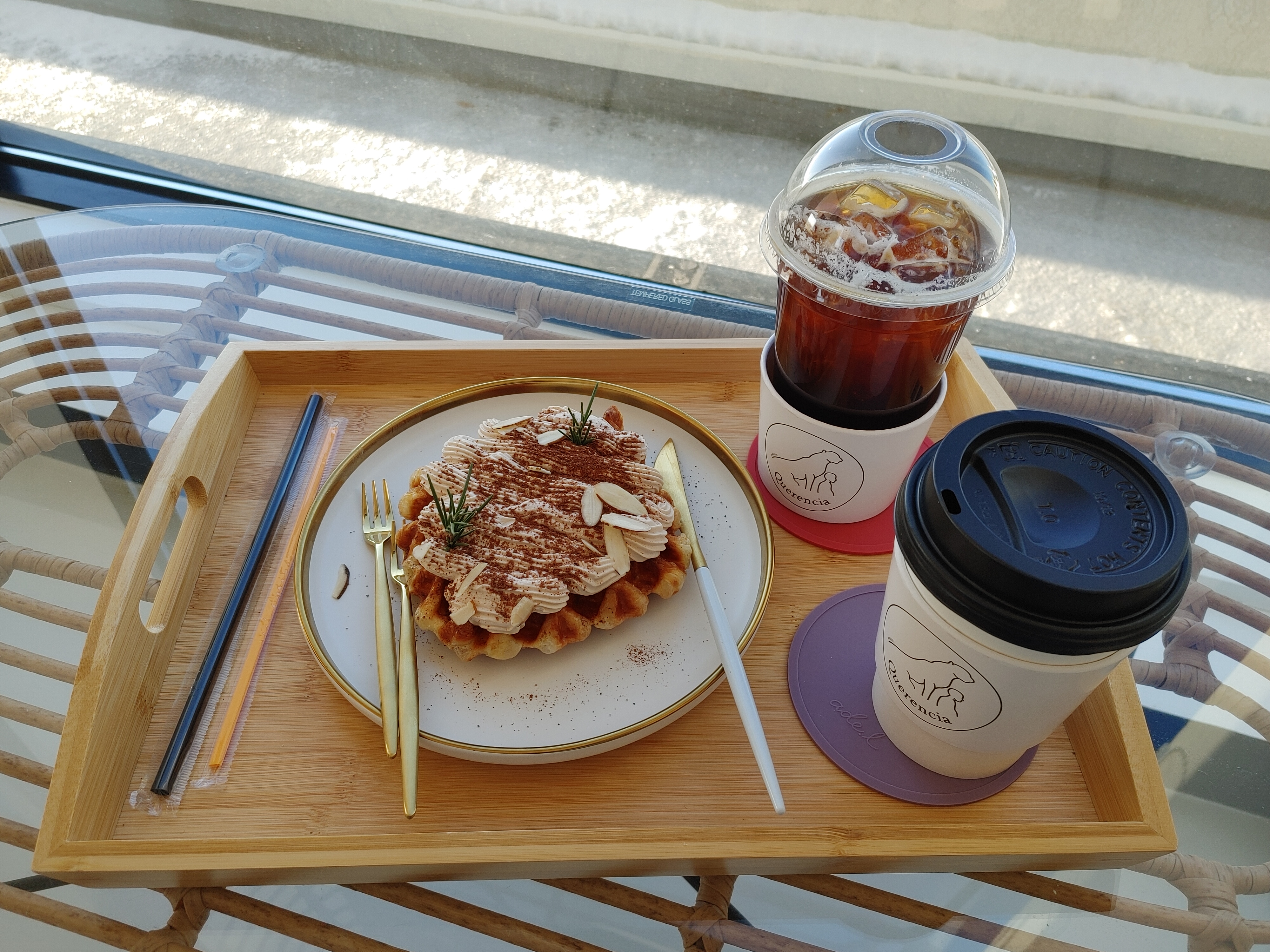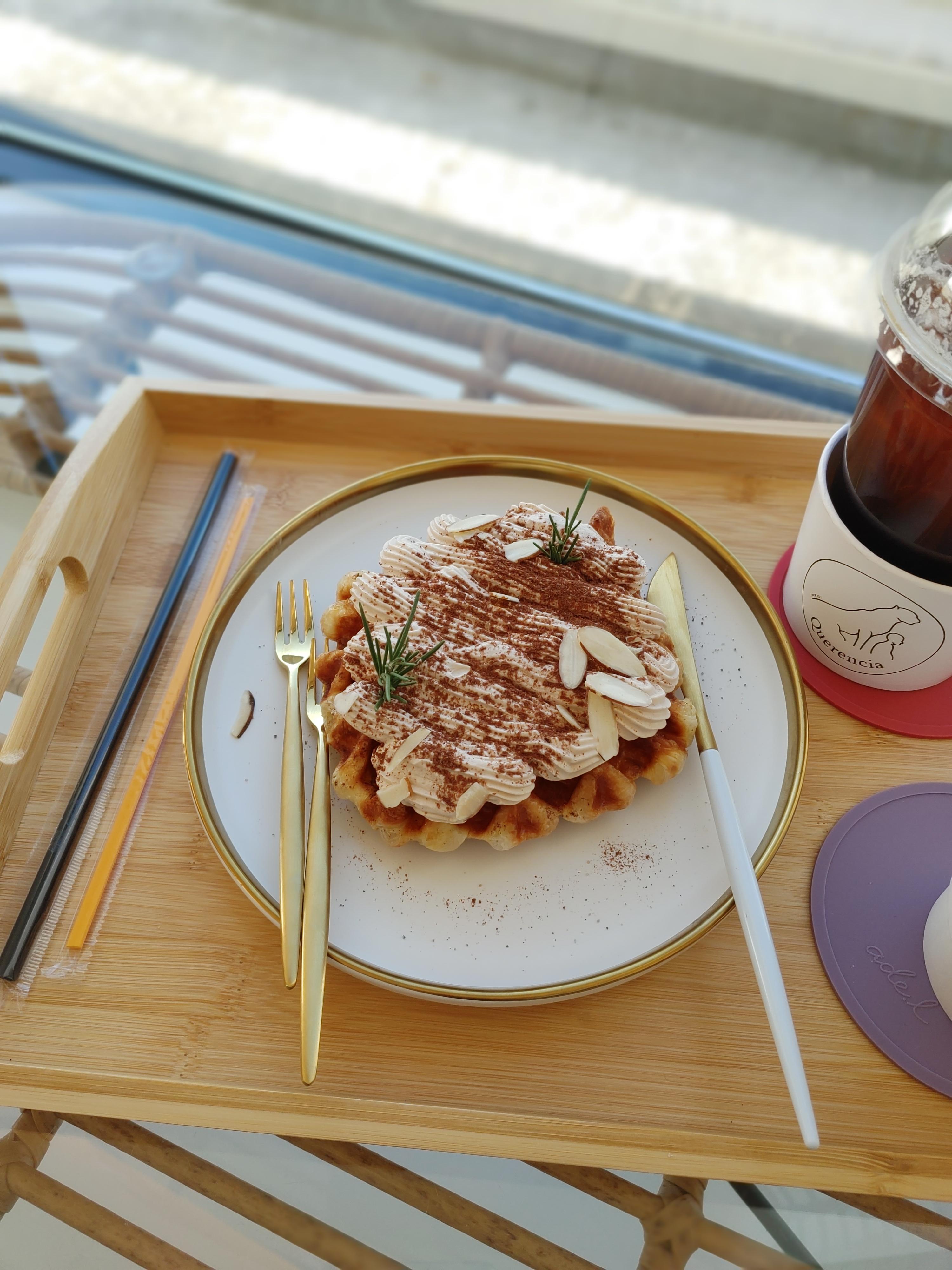 모카 크로플은 쇼케이스에 디피된 게 맛있어 보여서 주문했다. 역시나 예쁜 비주얼에 달달하고 맛있었다. ☕🧇🥐