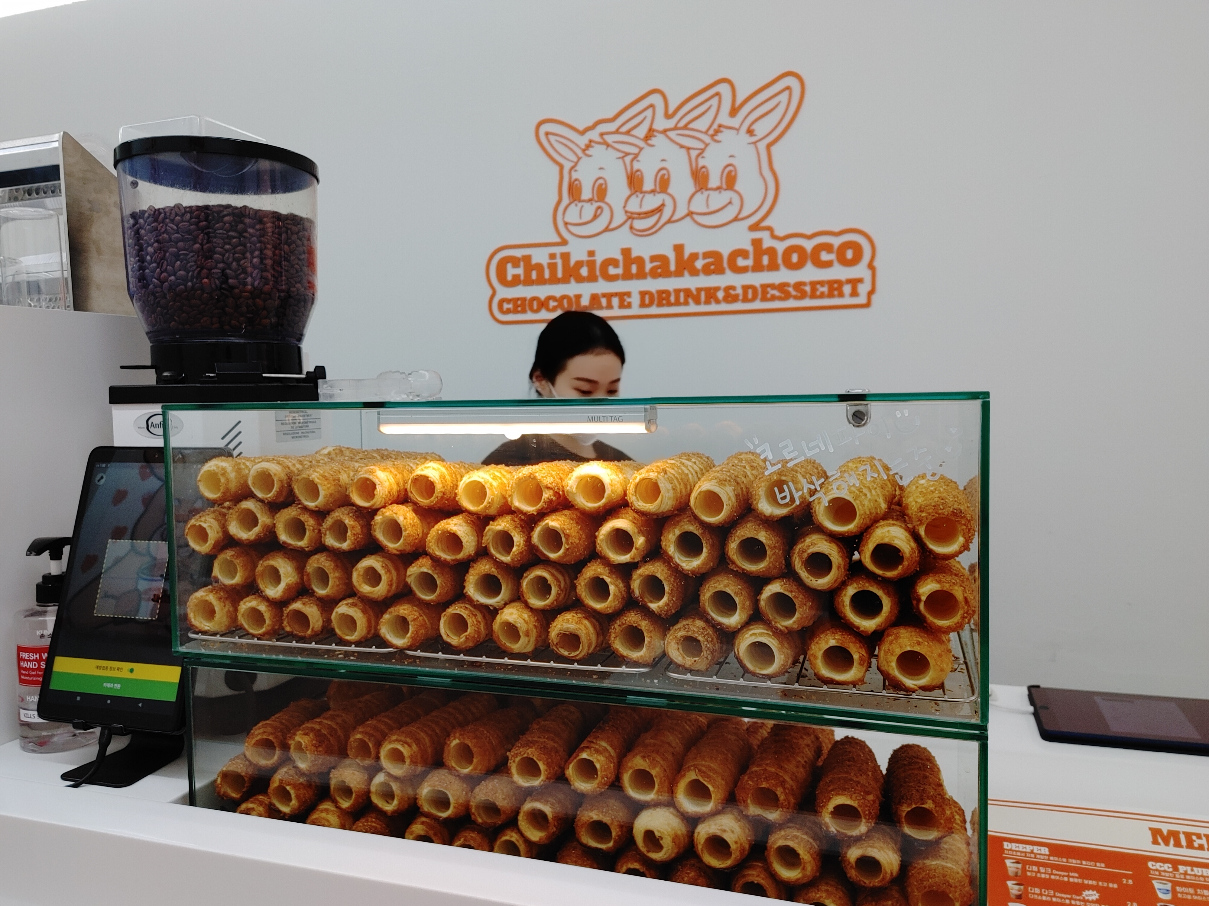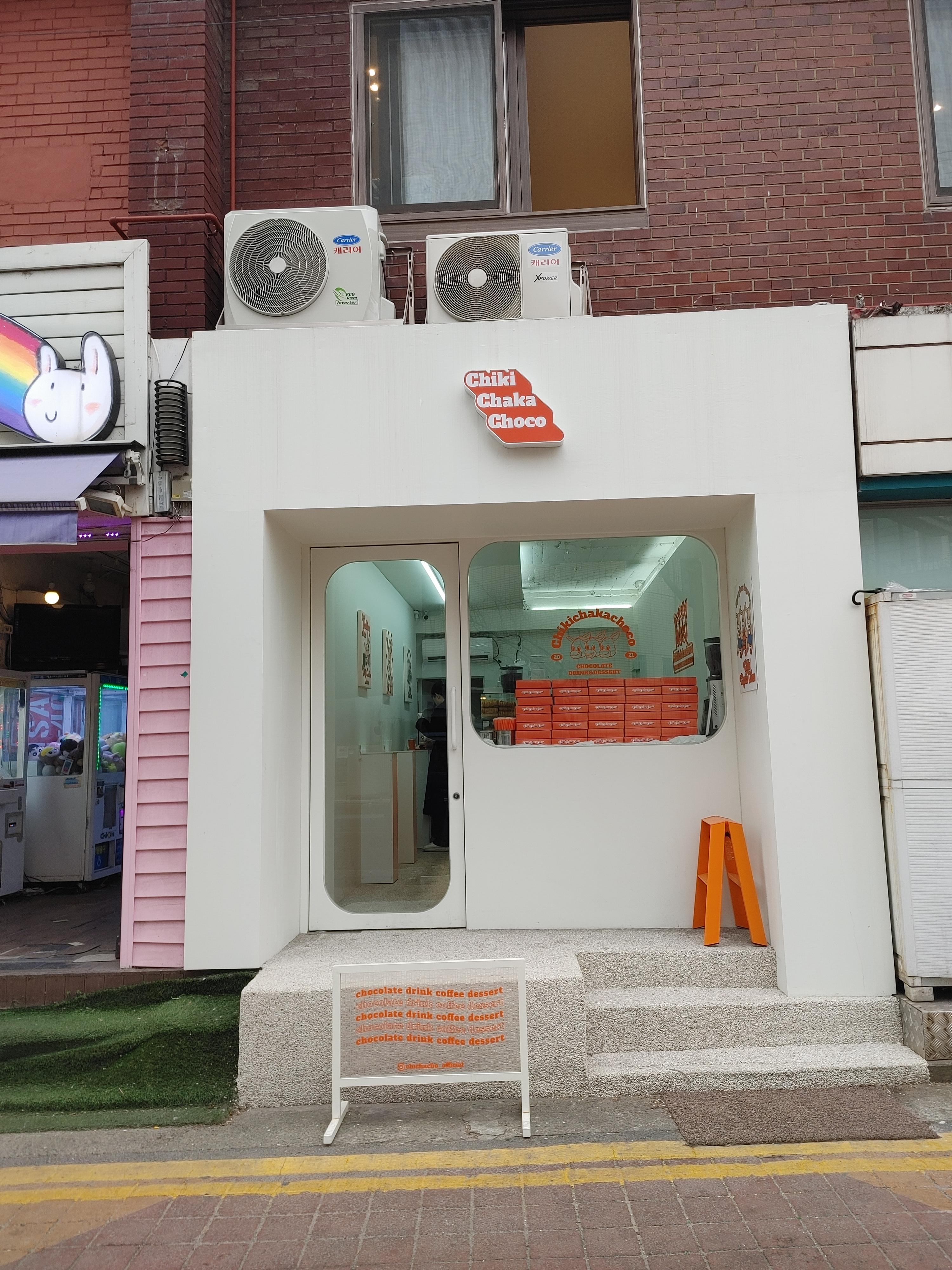 치키차카초코 서교본점은 작은 디저트 가게이다. 눈여겨보지 않으면 그냥 지나치기 쉽다. 달달한 초콜릿 음료와 코르네파이를 파는 가게인데 매장이 작다보니 포장 판매가 주를 이룬다. 간이 테이블이 있긴하지만 먹고가기 좋은 환경은 아니었다. chiki chaka choco