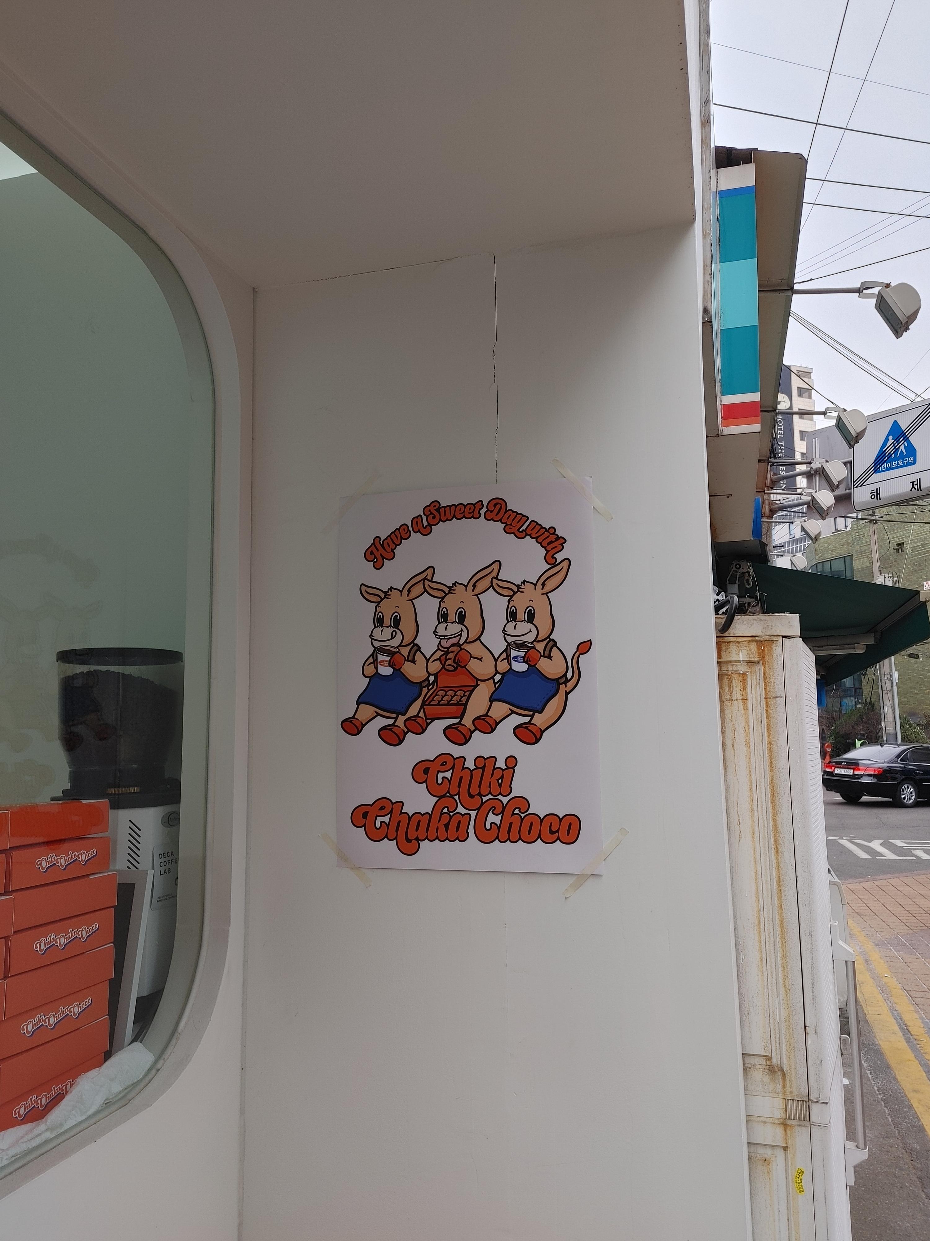 당나귀가 치키차카초코의 마스코트인 것 같다. 박스고, 종이가방이고, 매장 안에도 당나귀 캐릭터가 있었다. chiki chaka choco