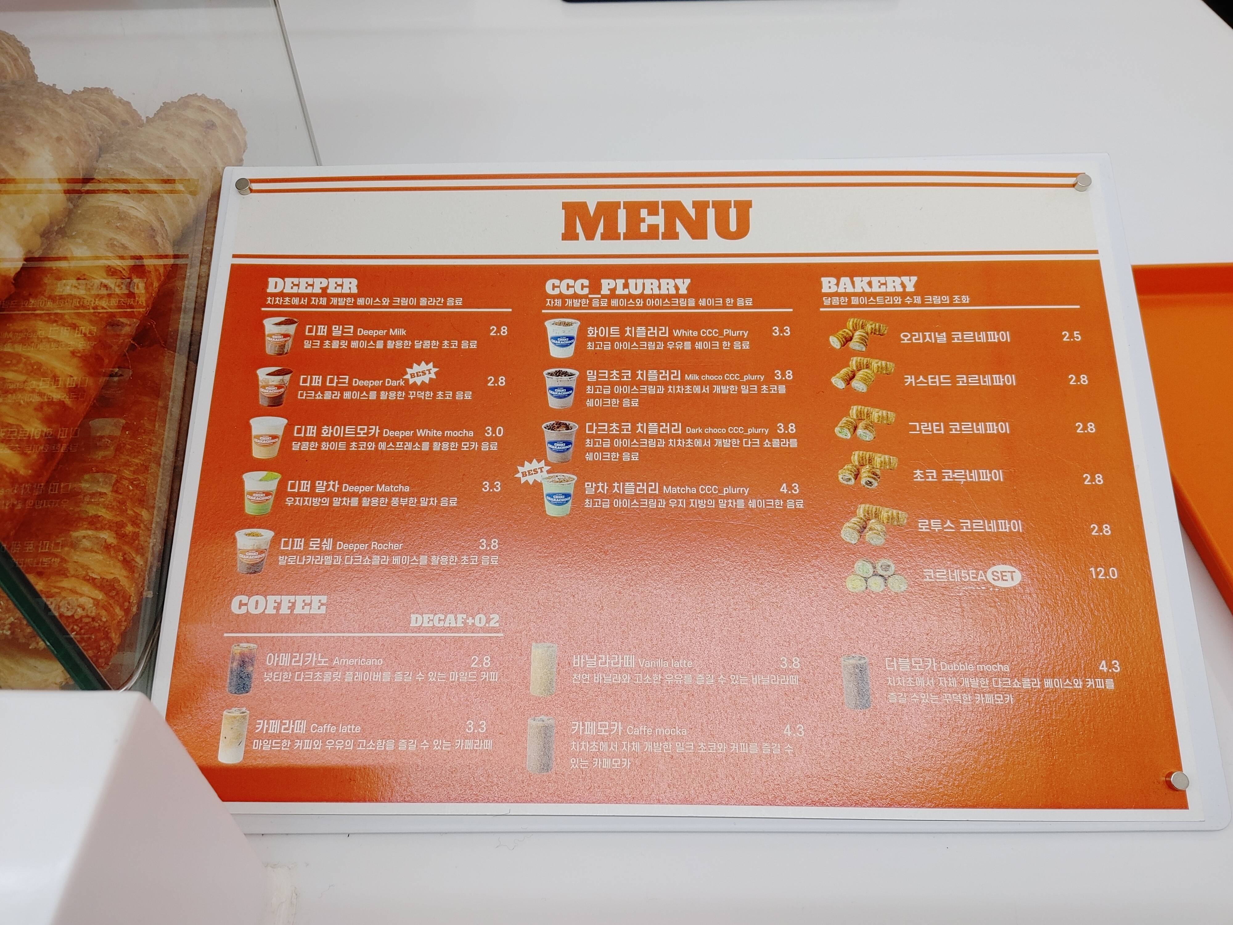 치키차카초코 음료 메뉴는 크게 커피, 쉐이크, 디퍼가 있다. 디퍼는 치키차카초코의 자체 개발 초코 음료라고 한다. 매우 궁금했지만 이미 카페갔다와서 음료는 패스하고 코르네파이만 구입하였다.