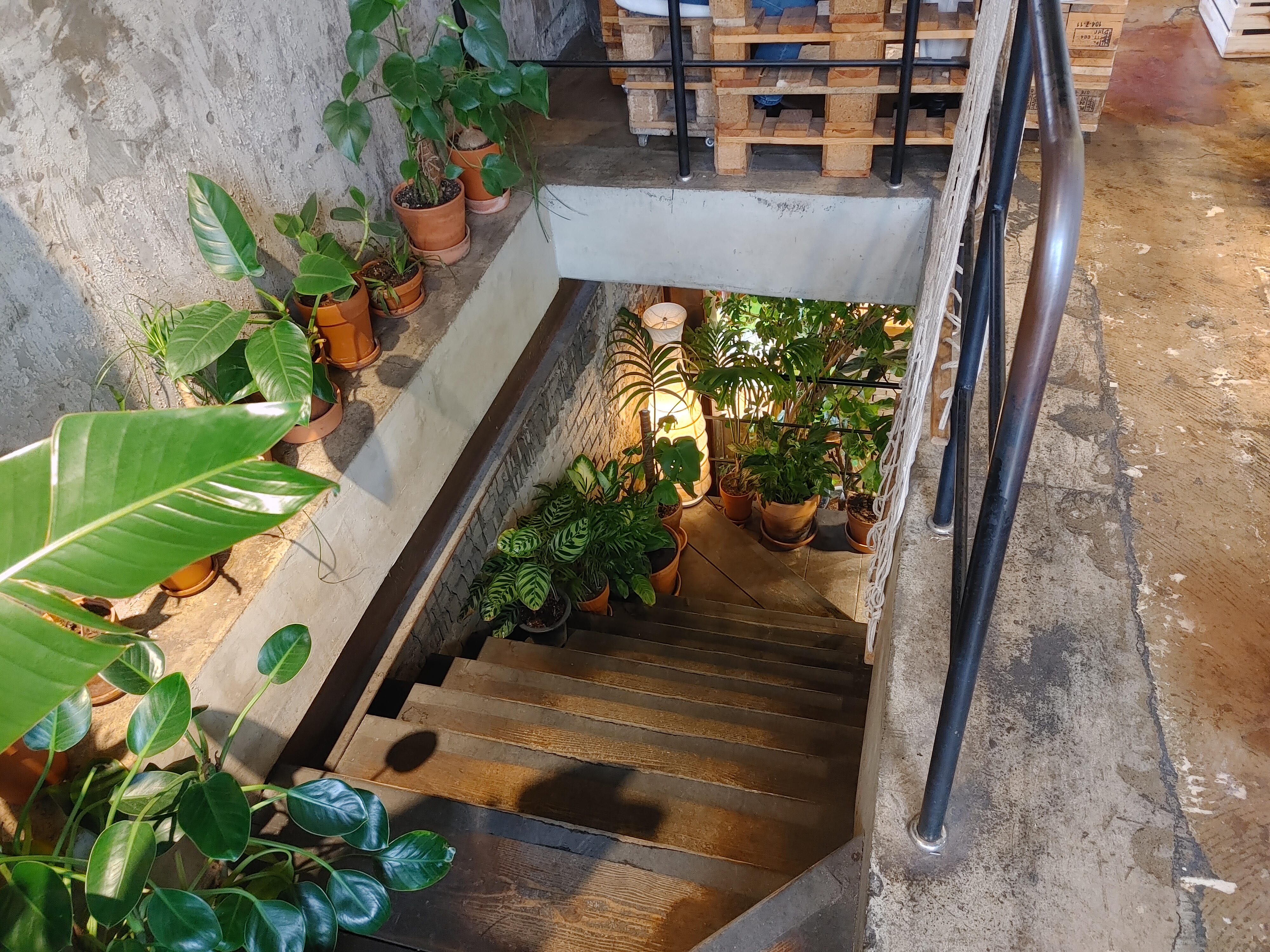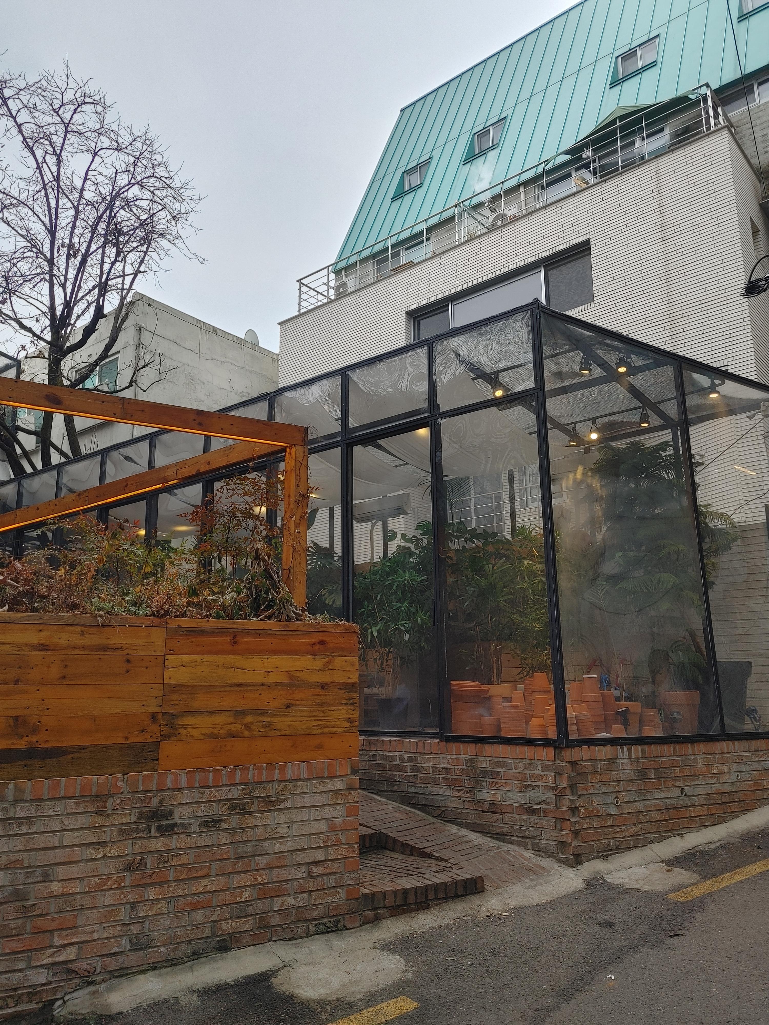 계단에도 화분들이 참 많았다. 푸릇푸릇 예뻤지만 화분들 때문에 계단이 약간 비좁게 느껴졌다. 안그래도 이런 생각이 들었는데 직원분이 계단에서 컵을 떨어뜨려 산산조각이 났다. 음식 받아서 계단 오를 때 조심해야 할 듯!