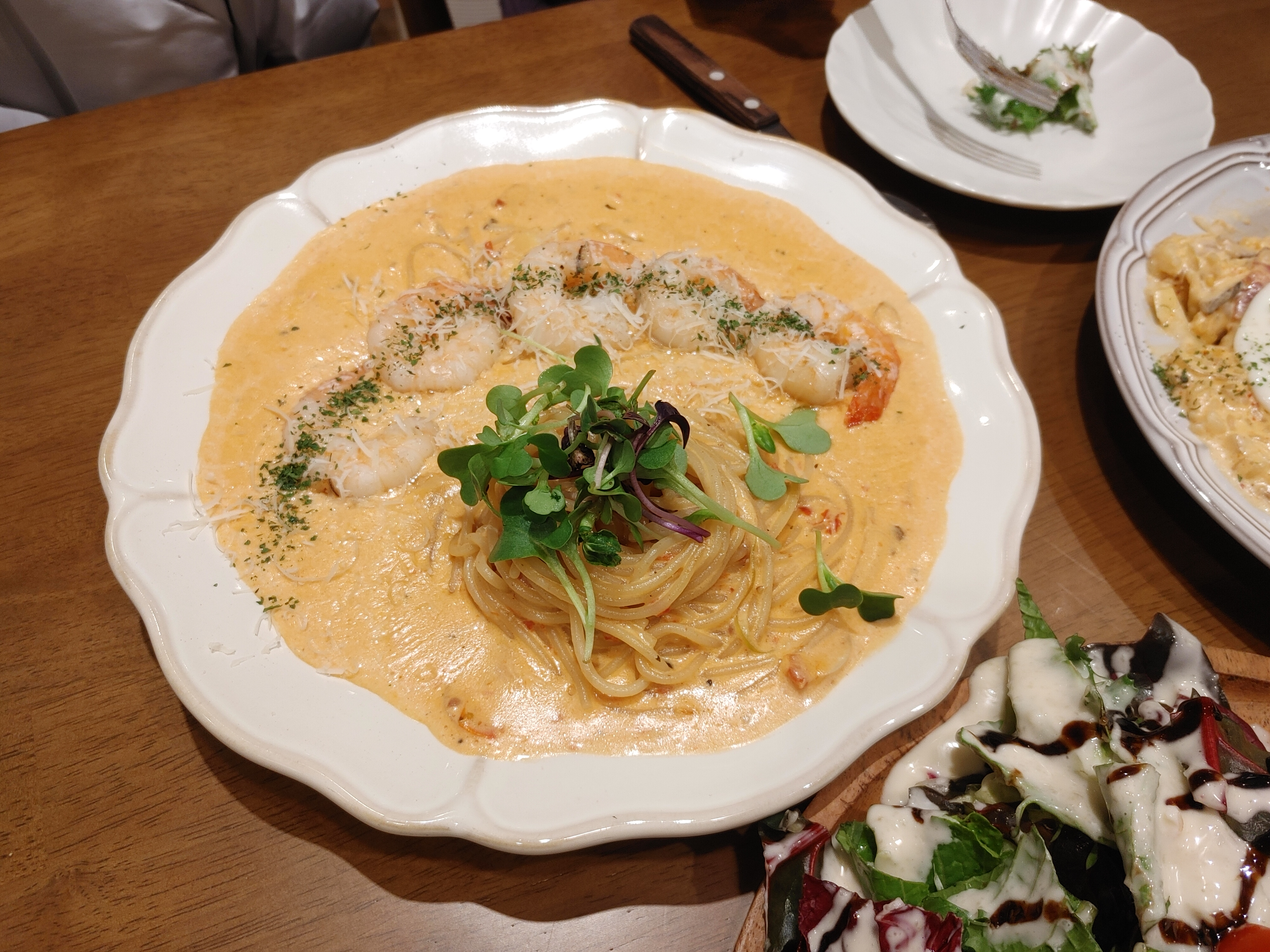 요건 새우로제파스타. 토마토 소스(무려 수제!!!)와 크림이 어우려졌고 통통한 새우도 5마리나 들어 있었다. 꾸덕꾸덕하고 고소 + 느끼함의 환상적인 궁합이었다.