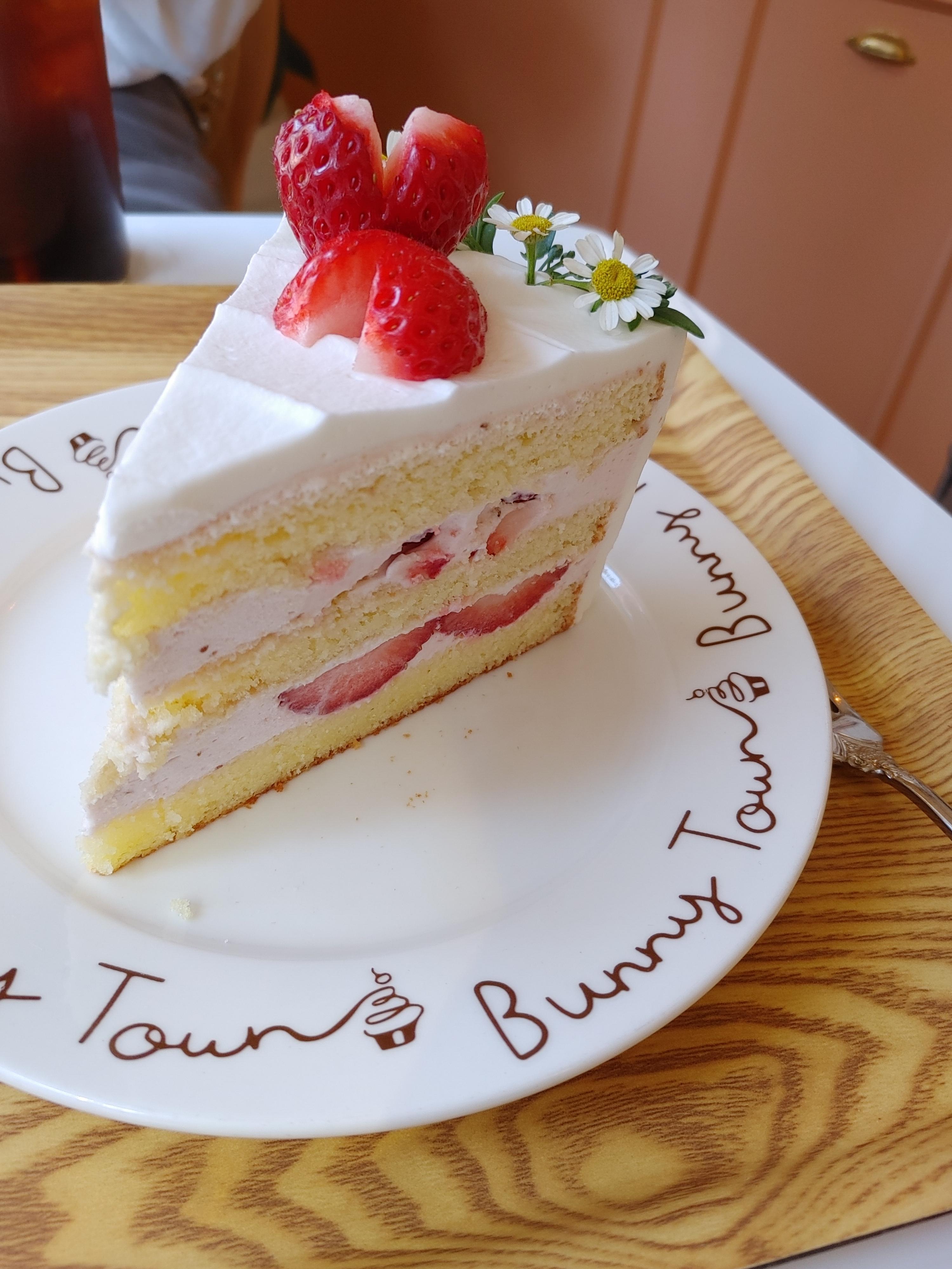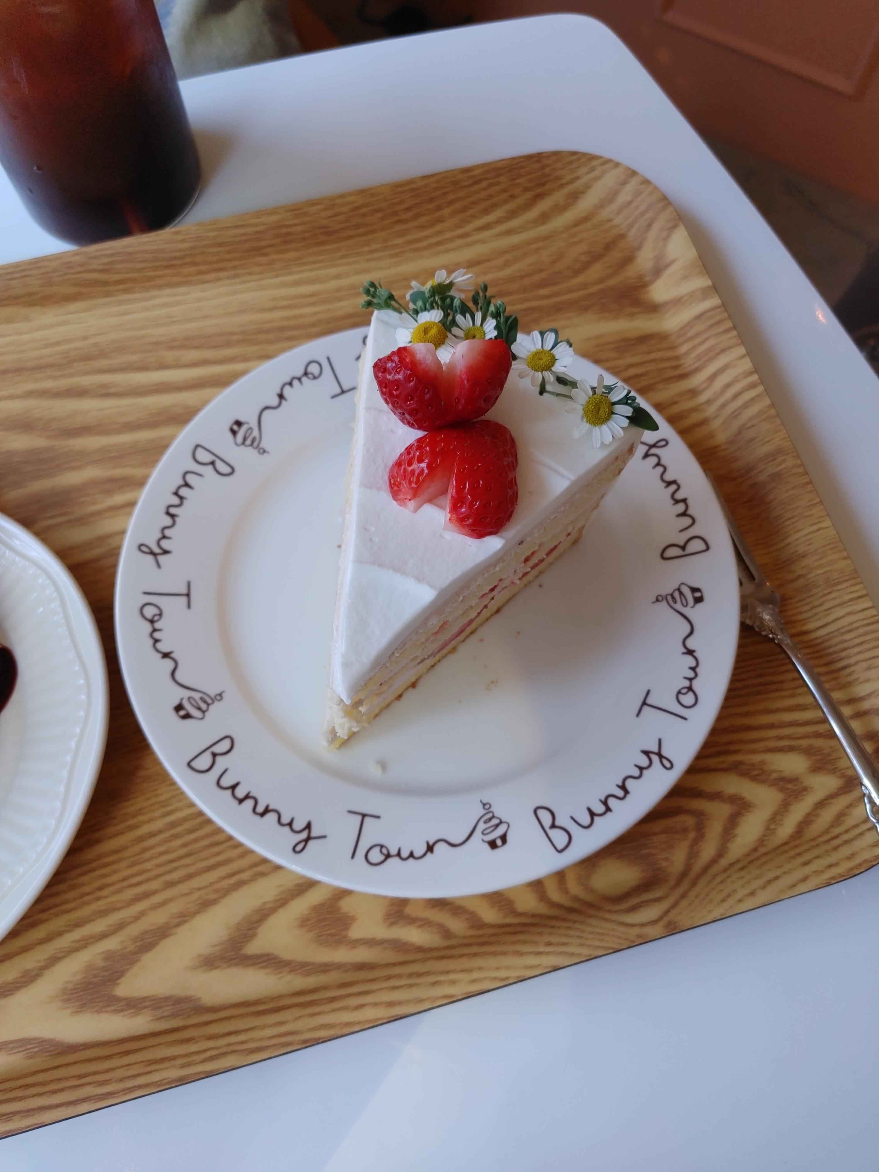 이건 버니타운 딸기 생크림 케이크! 생딸기가 많이 들어가 있어서 좋았고 위에는 생크림인데 안쪽은 연분홍 딸기 크림이다. 너무 맛있어서 10조각도 먹을 수 있을 거 같다.