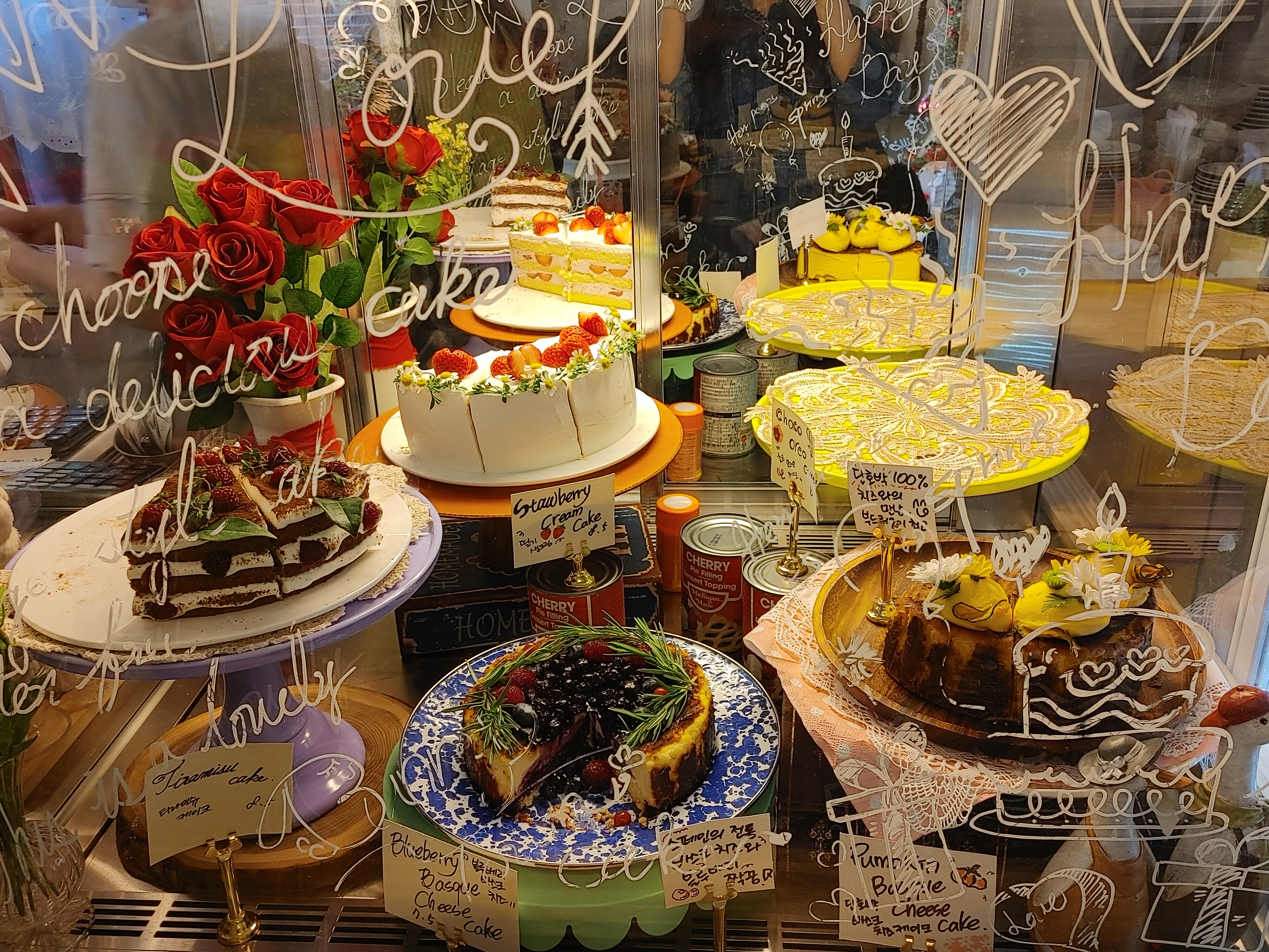 쇼케이스 가득 들어있던 케이크들... 비주얼이 진짜 엄청났다.