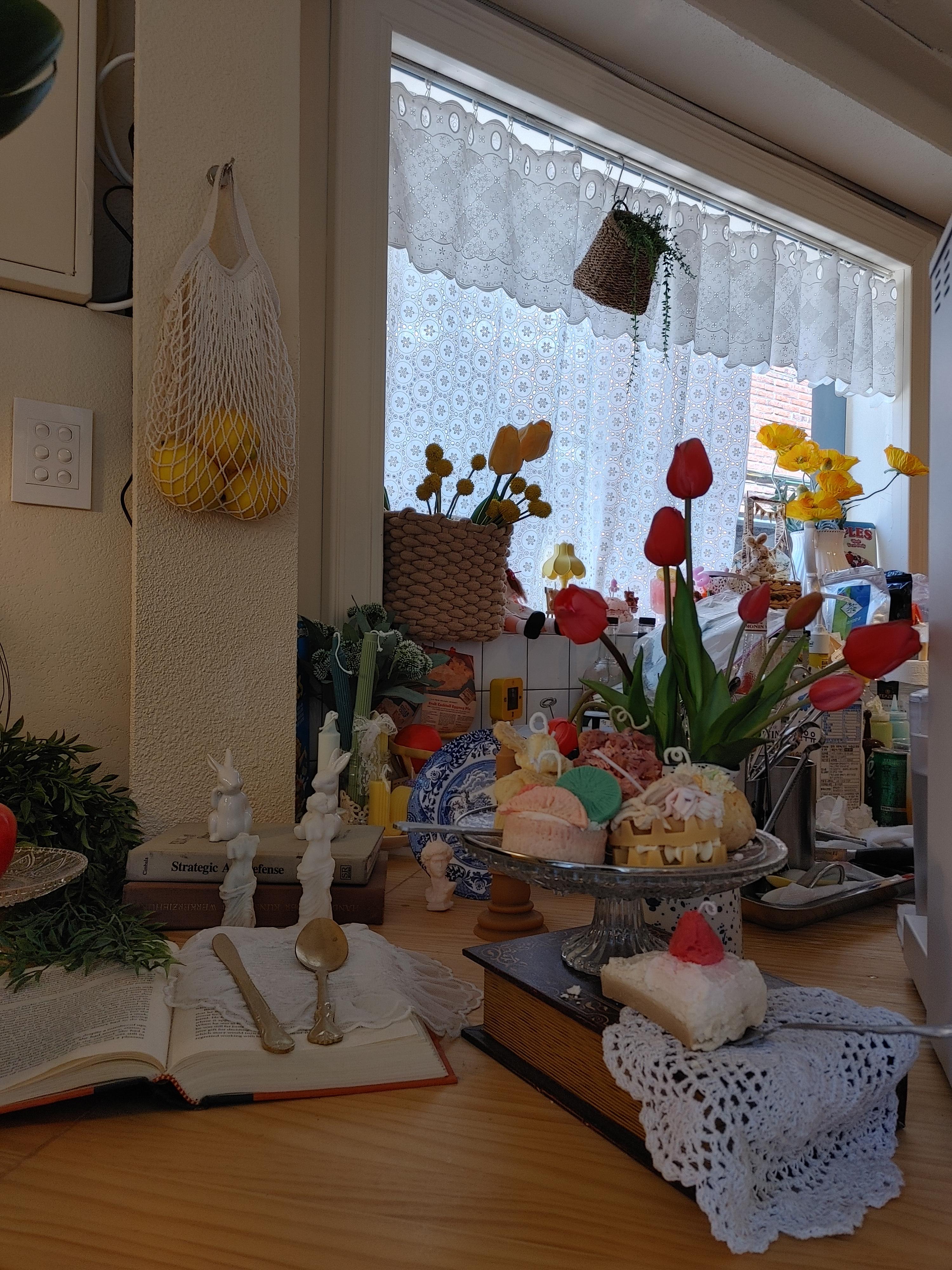 우리가 앉은 창가 자리에 예쁜 생화가 있어서 사진을 찍어보았다. 작약 향이 매우 좋았다.