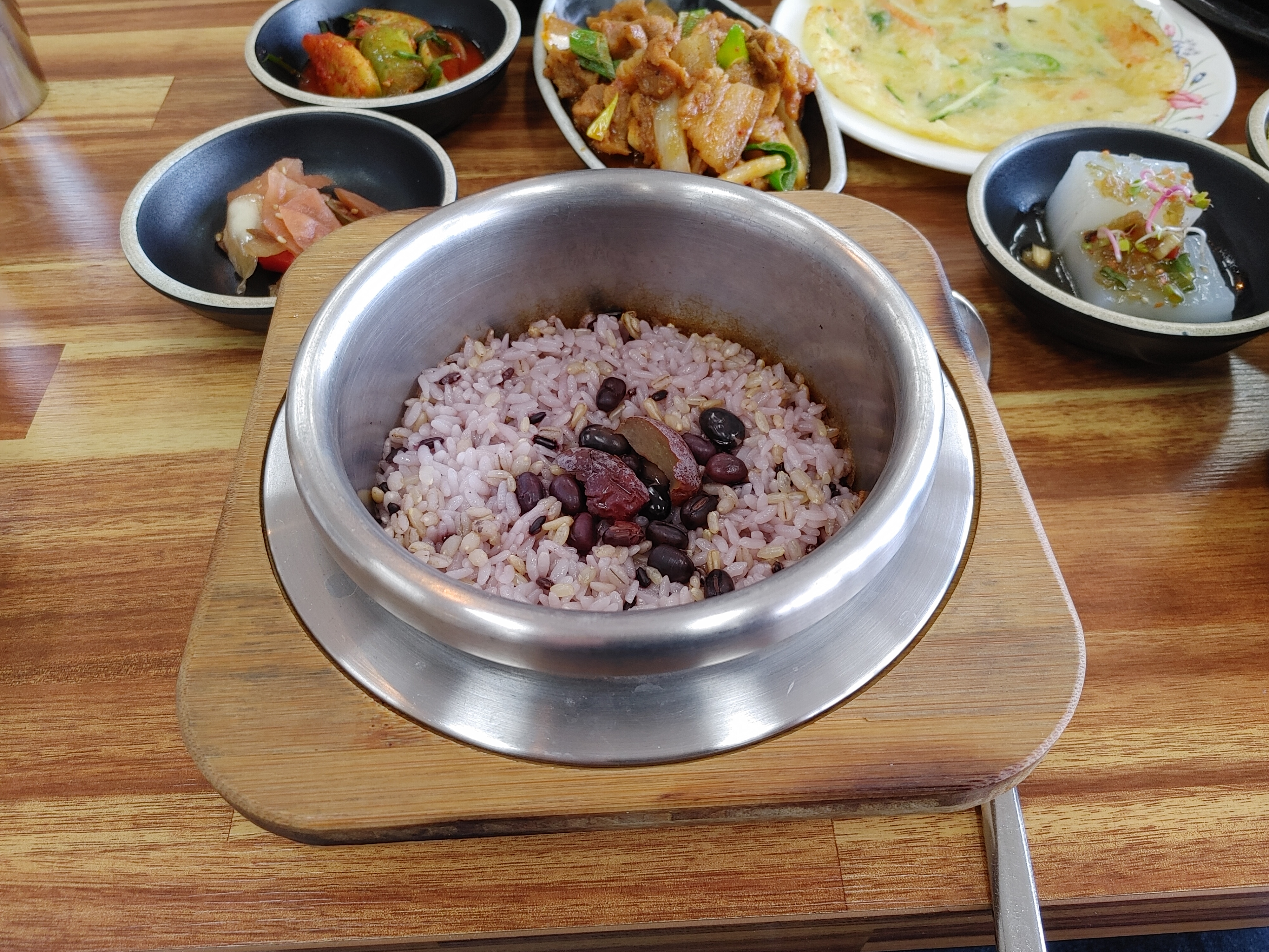 기본찬들도 다양하게 나왔다. 감자전, 샐러드, 물김치, 오이김치, 무짠지, 청포묵, 계란말이, 번데기까지!!! 종류도 많았지만 하나하나 다 깔끔하고 맛있었다.