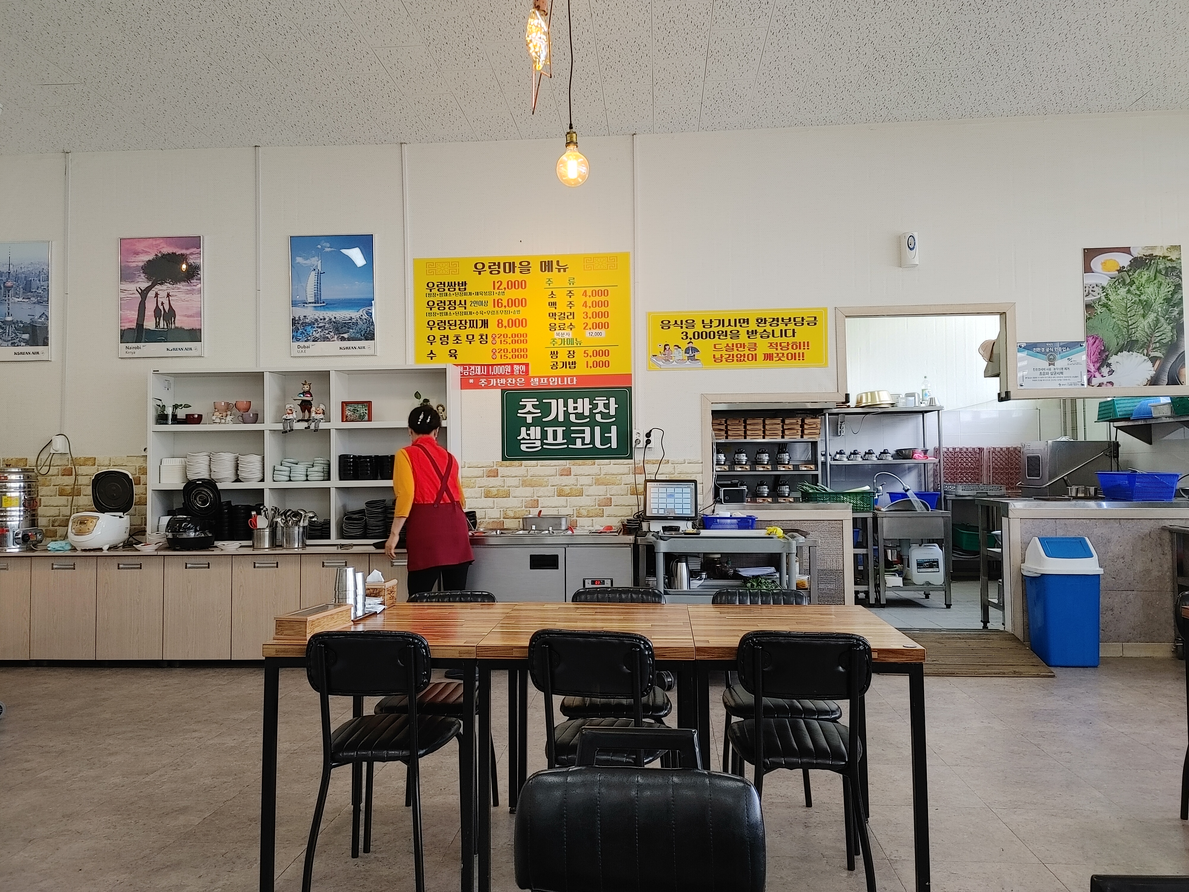 우렁 마을 식당 내부는 밖에서 본 것보다 훨씬 넓고 쾌적했다. 청결하고 각종 식물들로 생기가 느껴졌다.