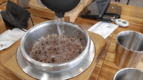 솥을 싹싹 긁어 밥공기에 밥을 옮기고 누룽지를 만들기 위해 물을 부어 다시 뚜껑을 덮어 놓았다.