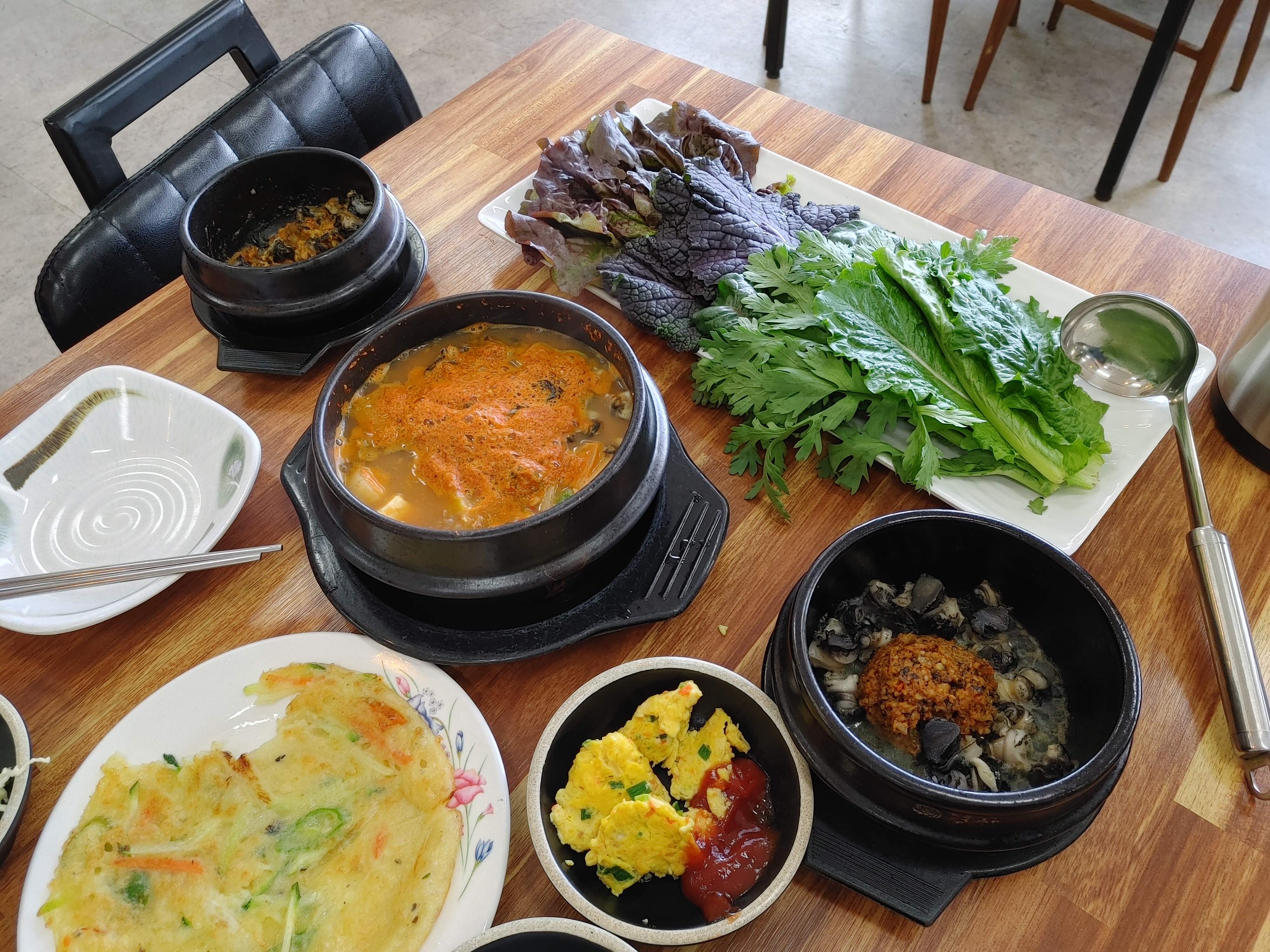 지글지글 뜨거운 뚝배기에 우렁쌈장이 담겨 나왔다.