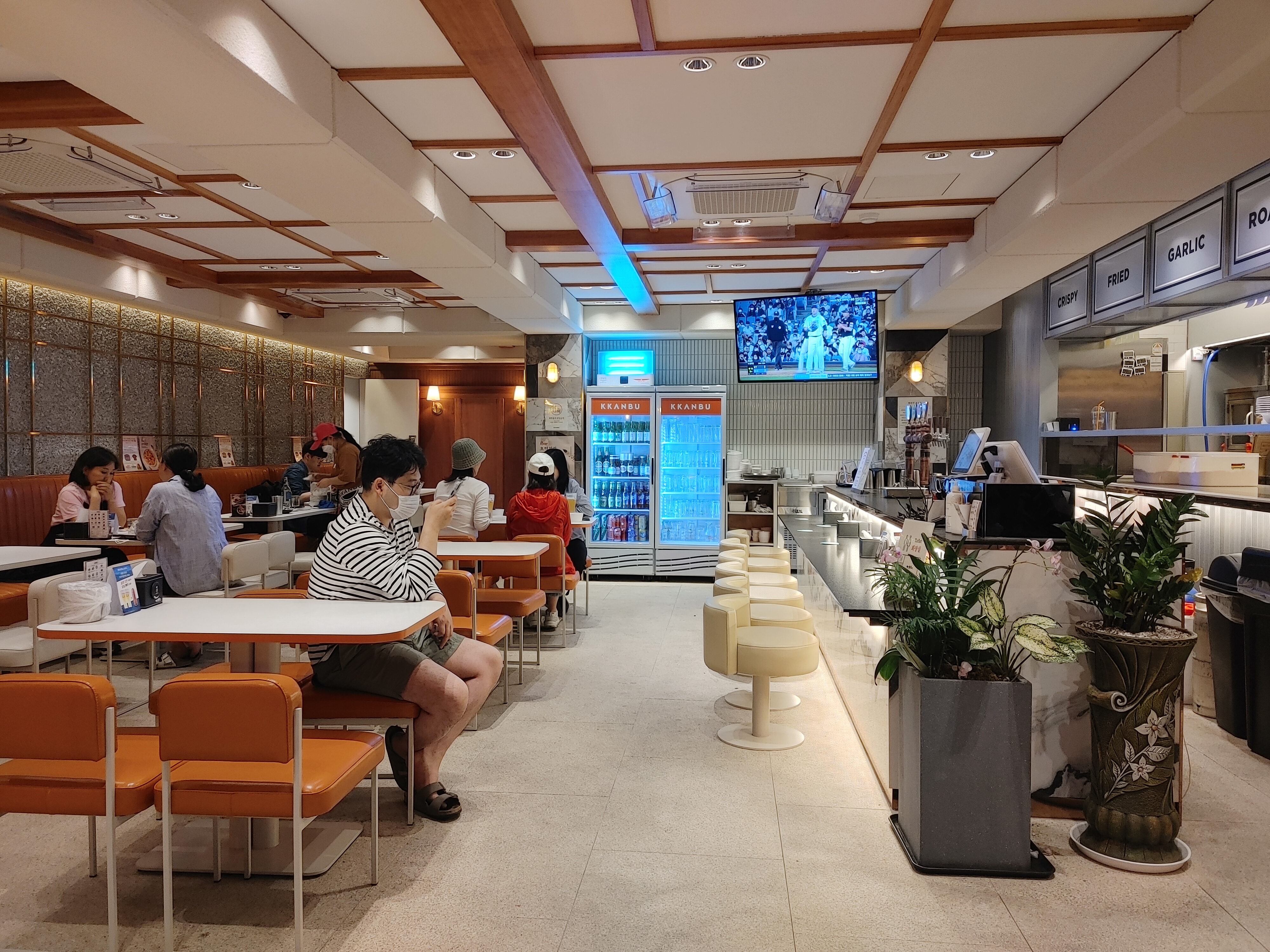 새로 오픈한 지 얼마 안돼서 매장이 엄청 깨끗했다. 홀도 넓고 분위기도 좋았다. 매장 앞 야외 테이블도 있었다. 확실히 거리두기가 해제되니 홀에 사람이 많았다.