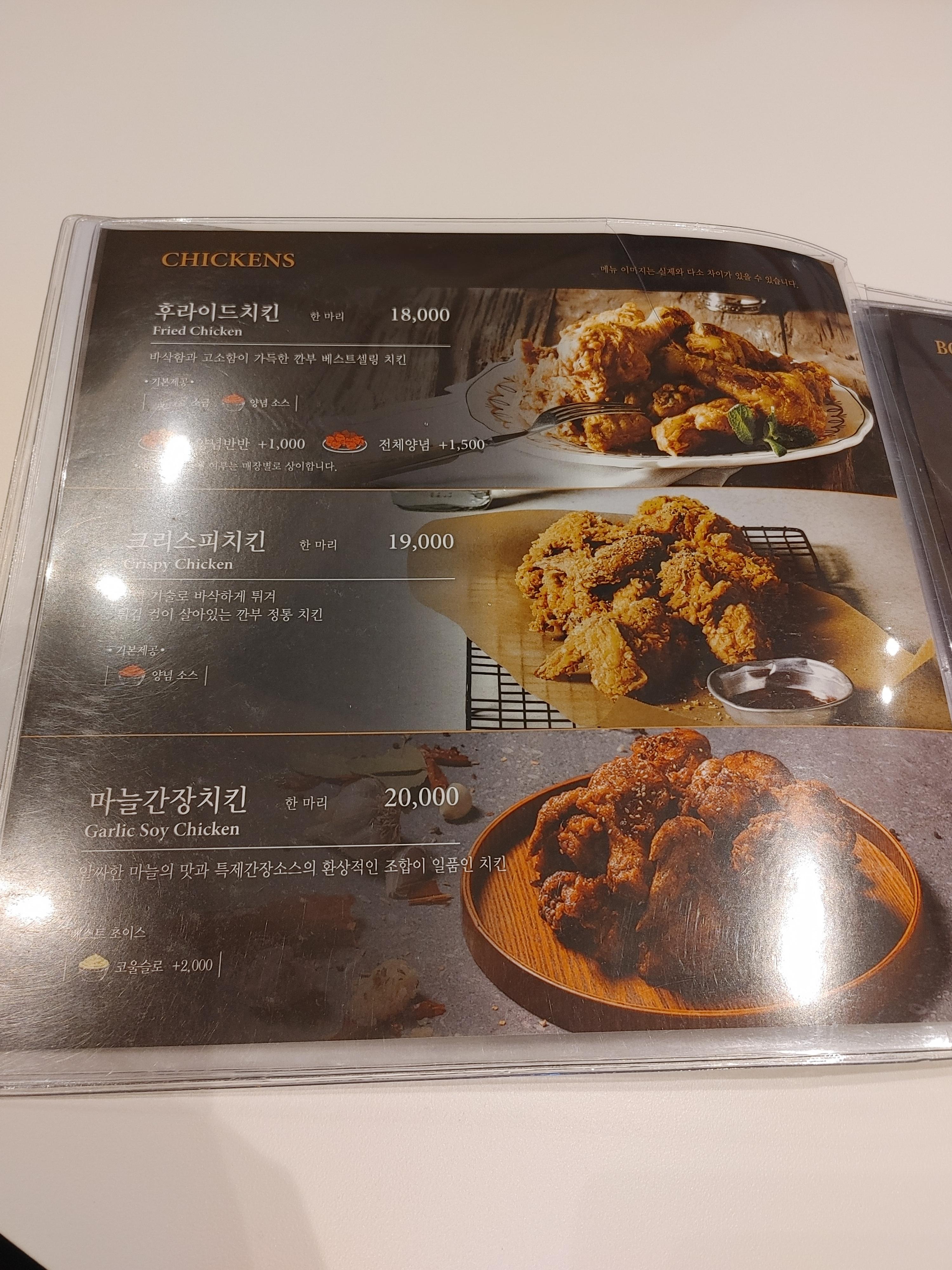 우리가 주문한 메뉴는 마늘간장치킨이었다. 가격은 20,000원. 원래는 고추간장 치킨을 먹고 싶었는데 이건 순살만 된다고 해서 마늘간장 치킨으로 바꿨다. 나는 이제 순살보다 뼈 치킨을 선호한다.ㅎㅎ