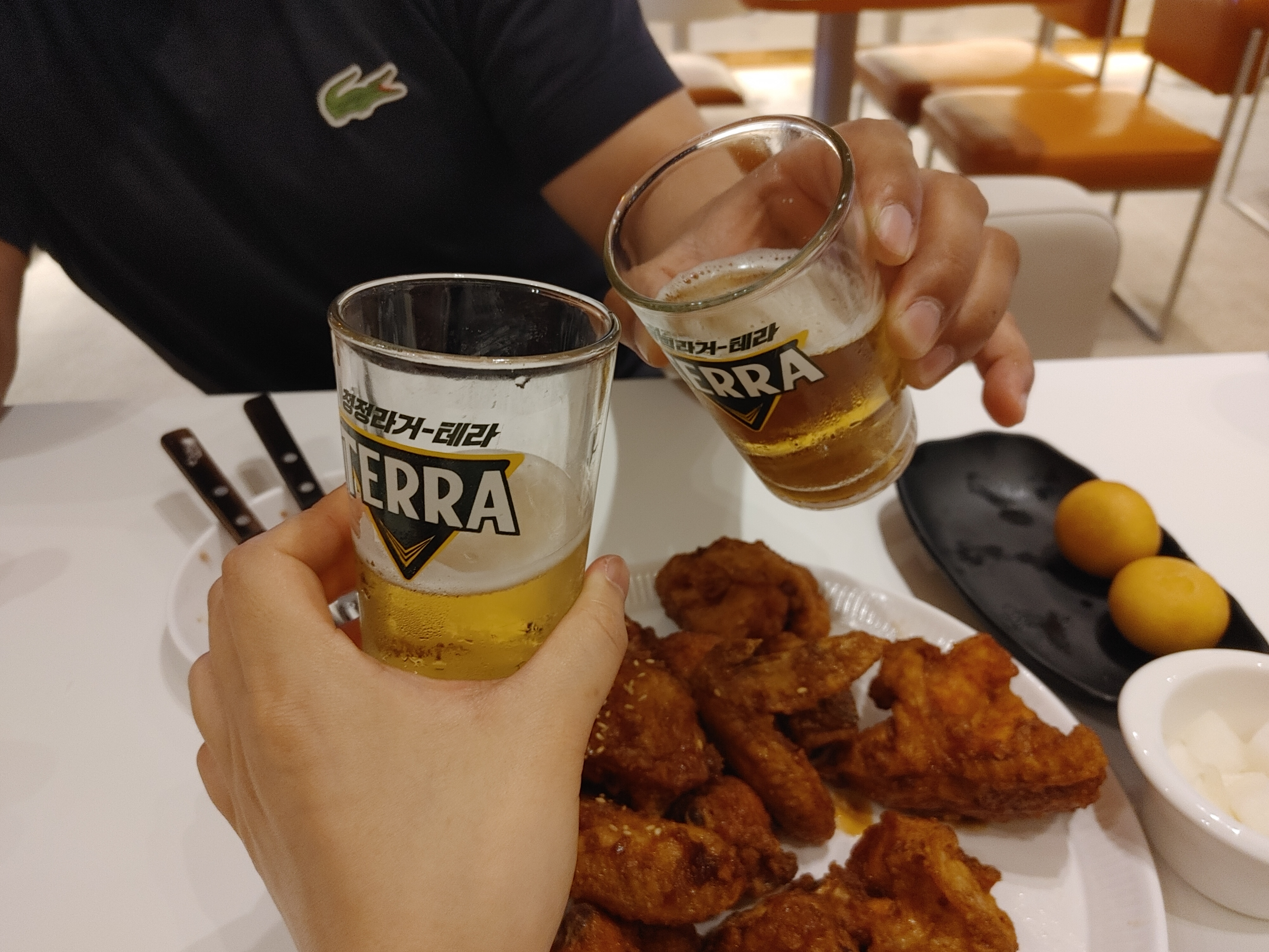 치킨집에서 먹는 치킨도 오랜만이었다. 집에서 먹어도 맛있지만 역시 매장에서 갓 튀겨 나오자마자 먹는 그 맛을 따라올 순 없다.