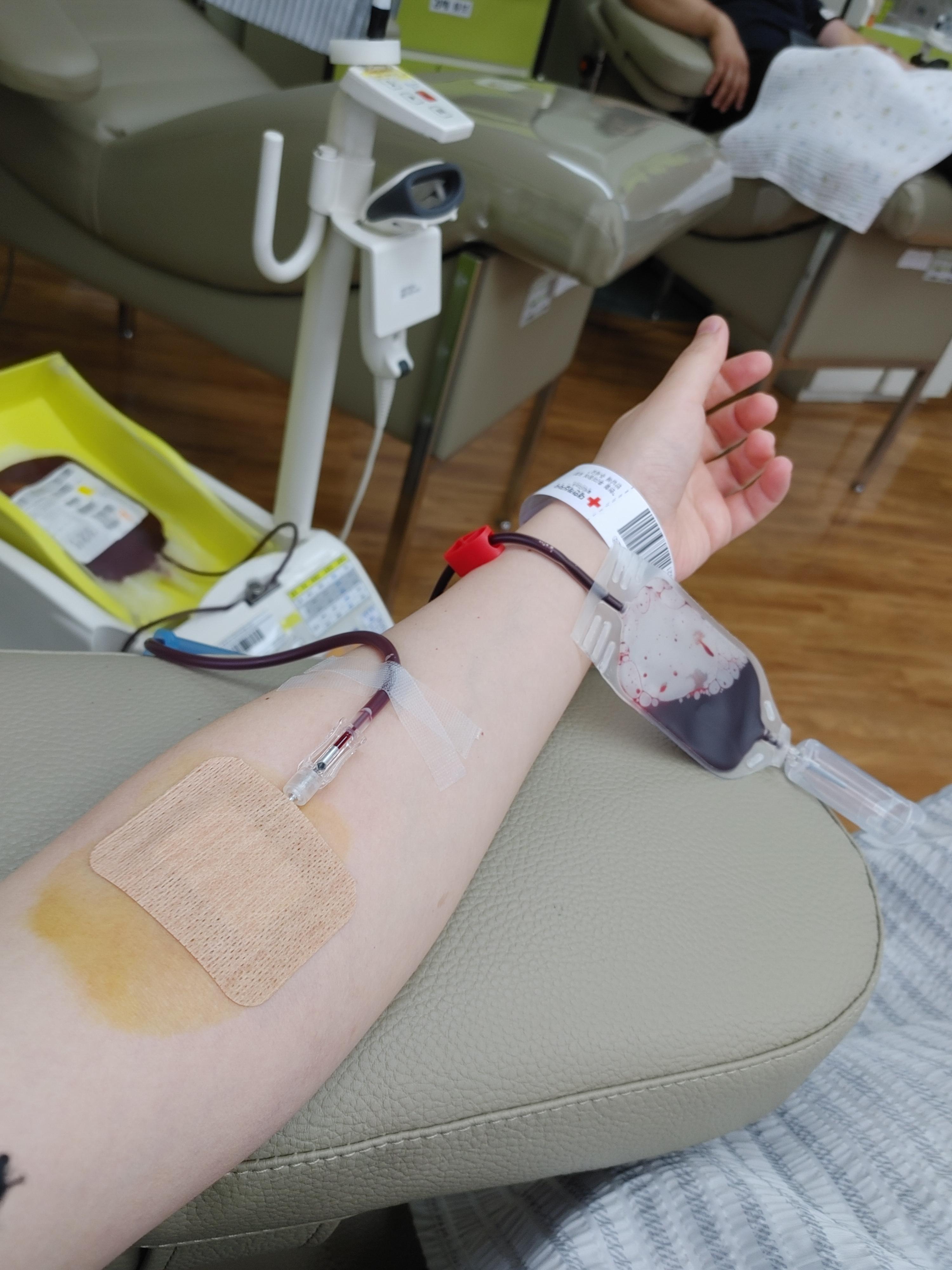 오늘의 컨디션, 수면 시간, 복용 중인 약, 말라리아 지역 방문 등 확인 후 혈압 재고 혈색소 수치를 측정하기 위해 채혈을 했다. 손가락이 따끔했다. 오늘도 13 이상의 수치가 나와서 전혈 헌혈이 가능했다. 건강하단 사실에 매우 기뻤다.