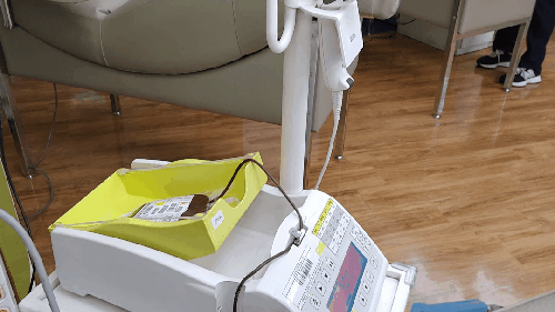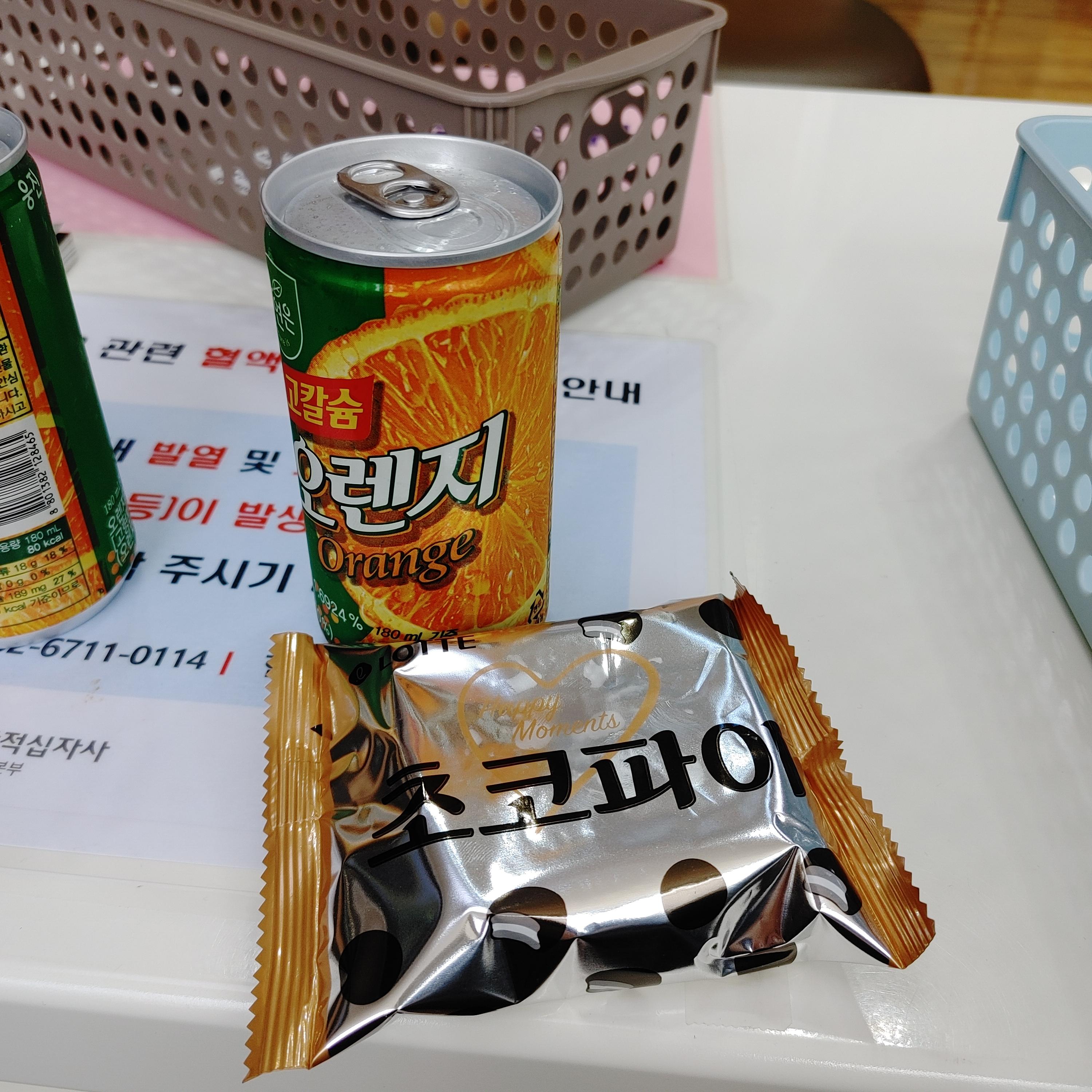 나는 가만히 누워 손을 쥐었다 폈다 하면 된다. 전혈이라 10분이면 헌혈이 끝난다.