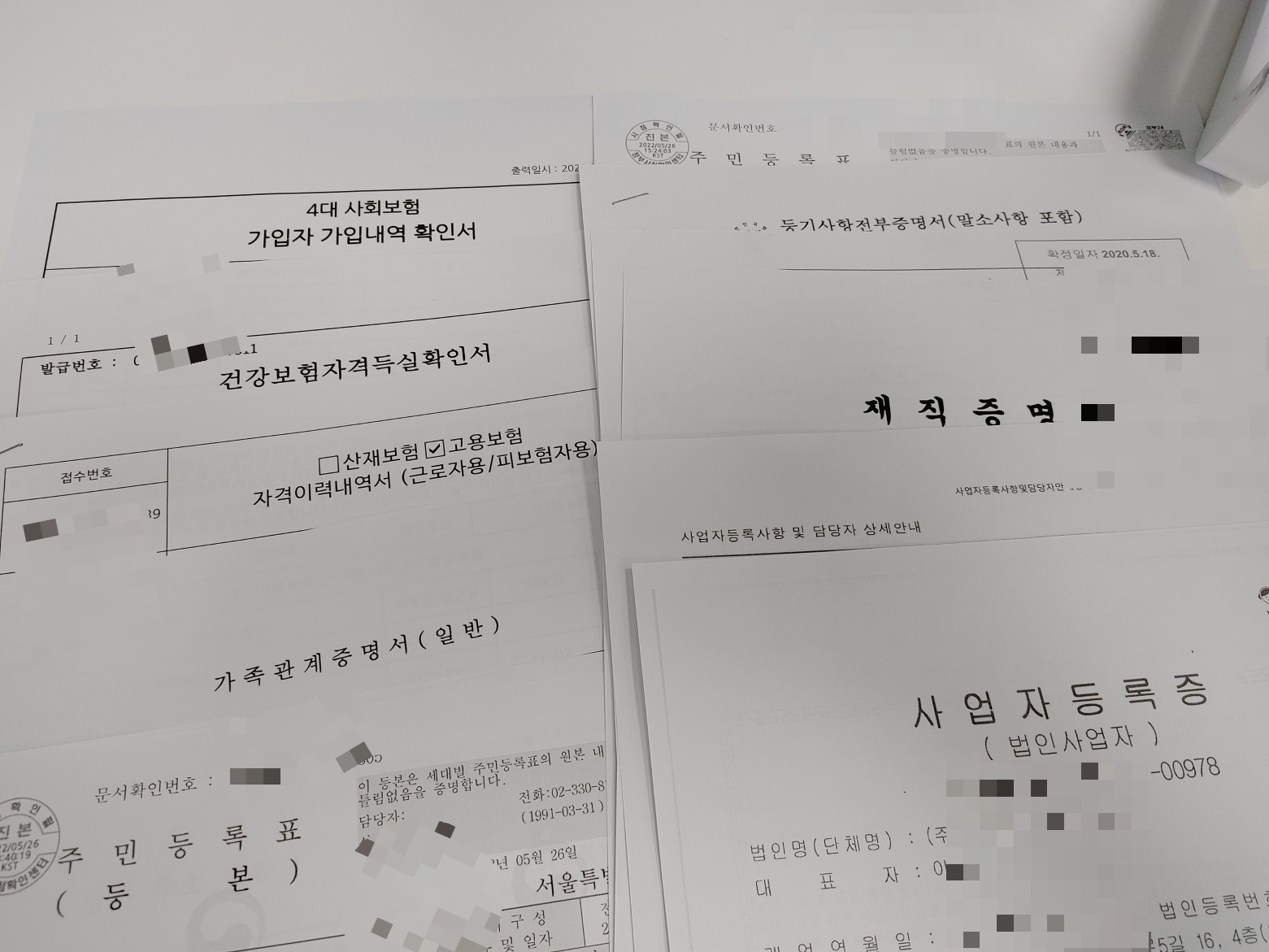 이렇게 싹 뽑아갔더니 추가 서류 없이 한 번에 끝났다. 서류 준비 시 주민등록번호가 전부 표시되게 출력해야 한다는 점을 유의해야 한다. 서류가 많아서 그렇지 회사 서류 외 나머지는 전부 인터넷 발급이 가능해서 준비가 어렵지는 않았다.