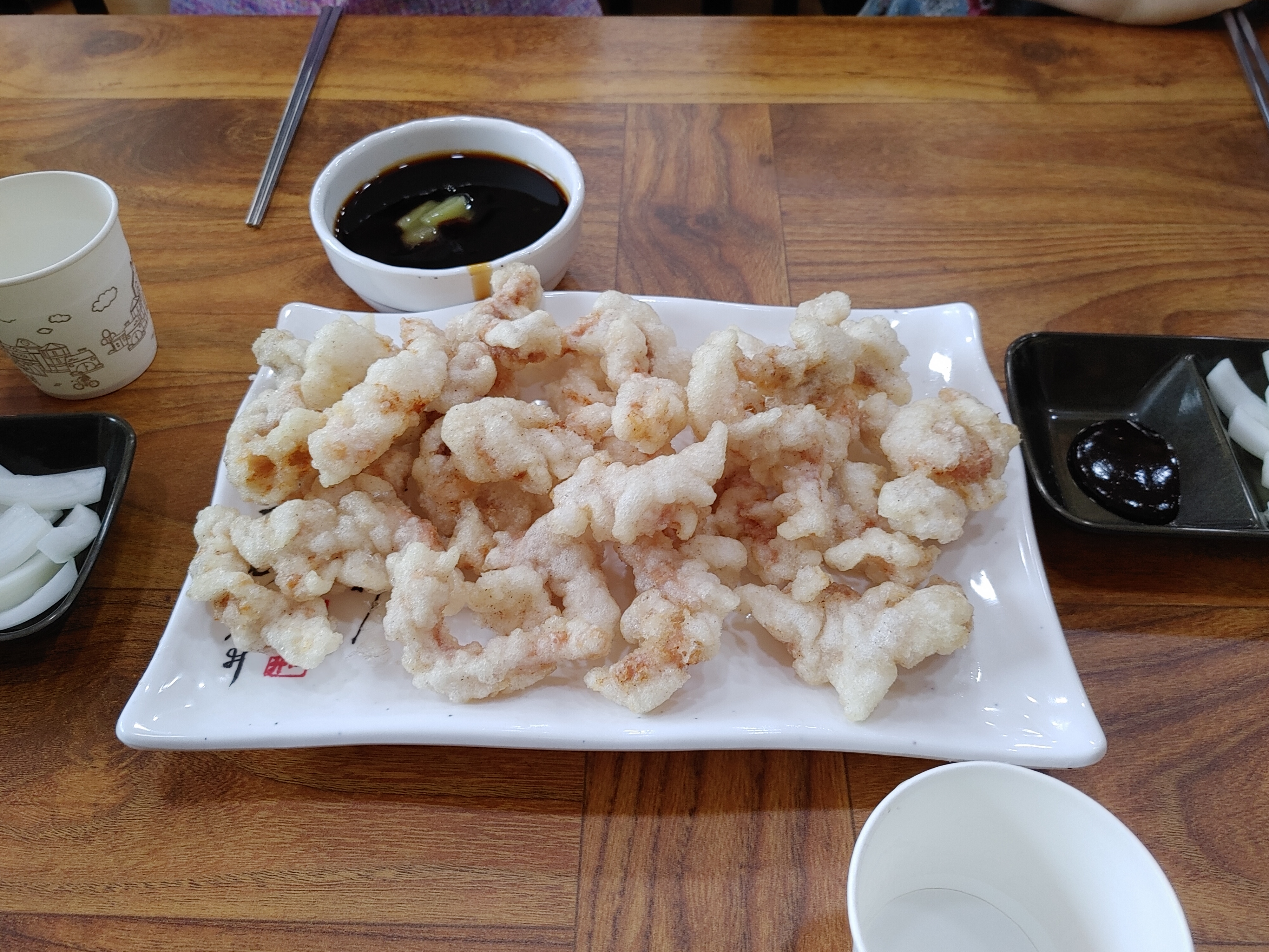 청양 황룡각 구기자 탕수육 중 사이즈. 탕수육 중짜리를 시켰는데 일행이 두 테이블이라 반씩 나눠 테이블에 놔주셨다. 사진은 탕수육 중짜리 1/2에 해당하는 양이다. 찹쌀 탕수육인 듯했다. 깨끗한 기름에 갓 튀겨 나와서 맛있었다. 소스는 조금 진한 느낌?이었다. 메뉴 이름이 '구기자 탕수육'인데 소스에서 구기자 맛이 나는 거 같았다. 소스도 튀김도 굿굿!!