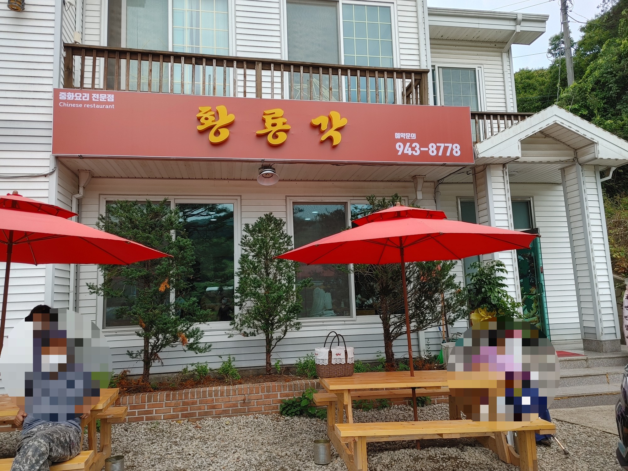 대로변에 있는 2층 단독 건물에 황룡각이 있다. 배달은 안 하는 거 같았고 주차 공간이 넓었다. 점심시간 때는 손님이 워낙 많아 대기 걸리기가 쉽다. 대기 손님들을 위해 매장 앞 테이블과 그네도 있었다.