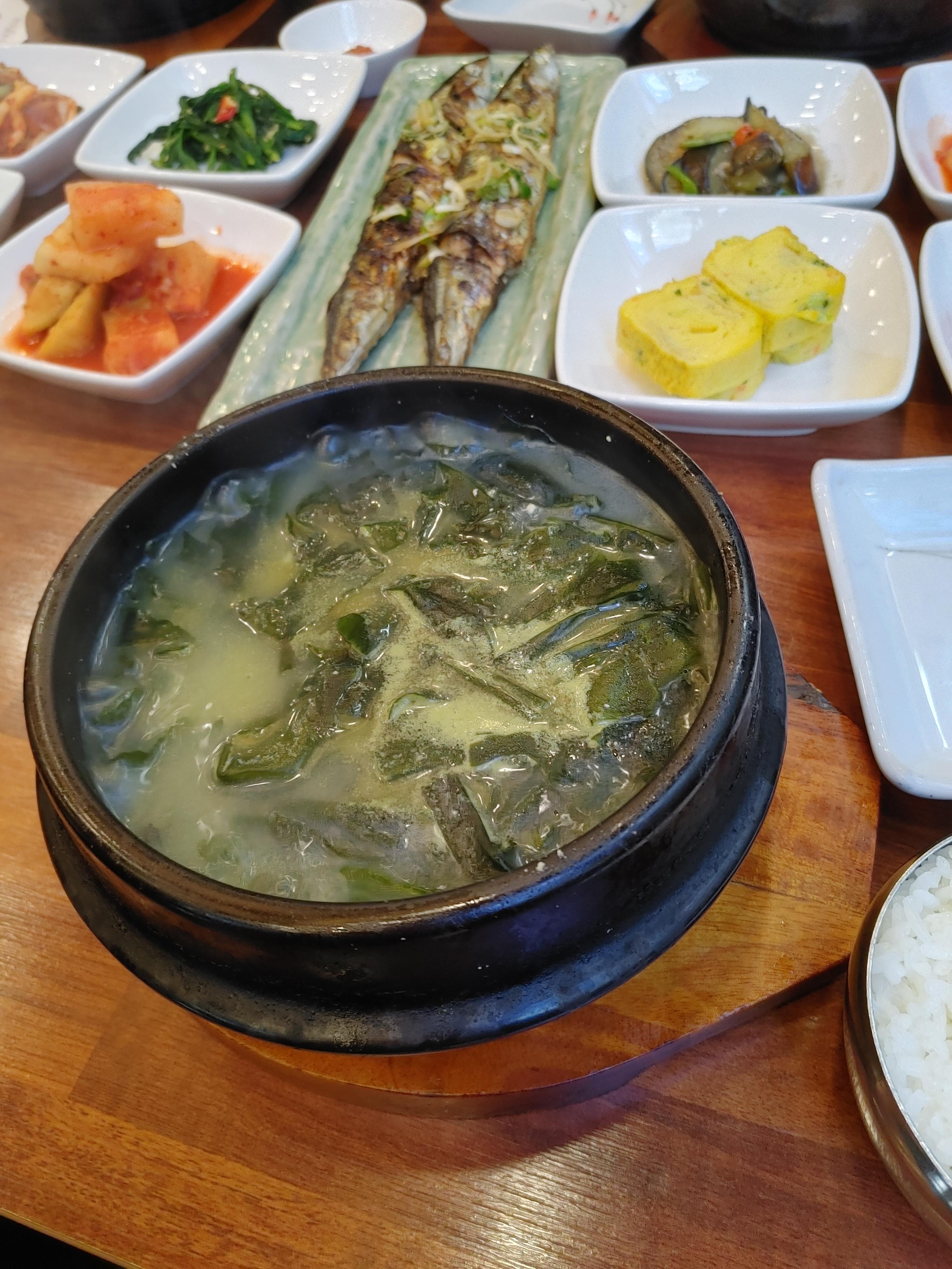 '마곡미역'은 식당 이름에서 유추해 볼 수 있듯이 미역국 전문점이다. 몸이 허할 때 먹기 좋은 미역국. 나는 가자미 미역국, 소고기 미역국 다 먹어봤는데 역시 미역국엔 소고기가 들어가야 제맛인 것 같다. 밑반찬도 깔끔하고 맛있는데 특히나 통 꽁치구이가 고소하고 정말 맛있다. 전체적으로 맛있고 건강한 밥상 느낌이다.