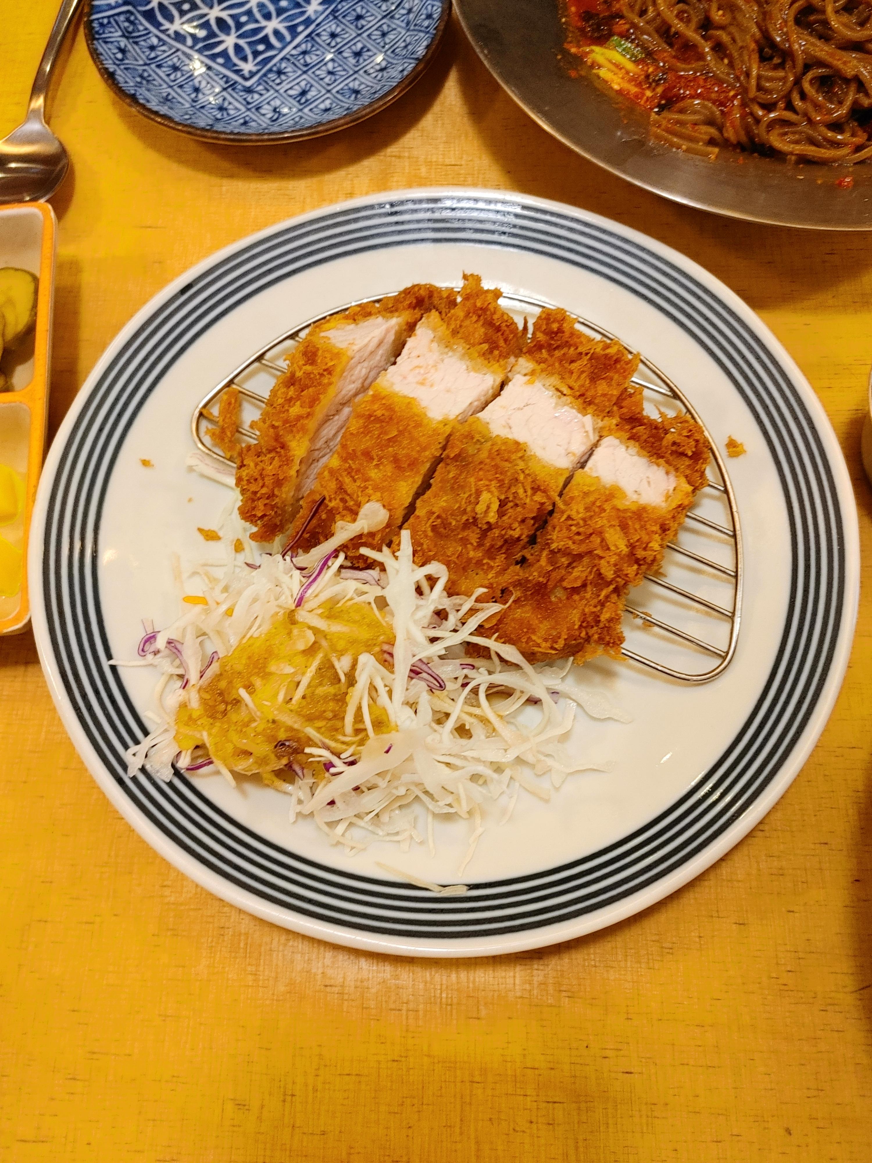 고기가 두껍고 튀김옷은 얇았다. 바삭하게 잘 튀겨 나와 잡내 없고 너무 맛있었다. 그런데 양이 너무 적어서 아쉬웠다. 2인이서 3가지 메뉴를 시켰는데 양이 많다고 느껴지기보단 딱 맞게 느껴졌다. 돈까스가 약간 사이드 메뉴 양정 도로 나와서 그런 듯...ㅎㅎ 그래도 맛있었으니 만족한다.