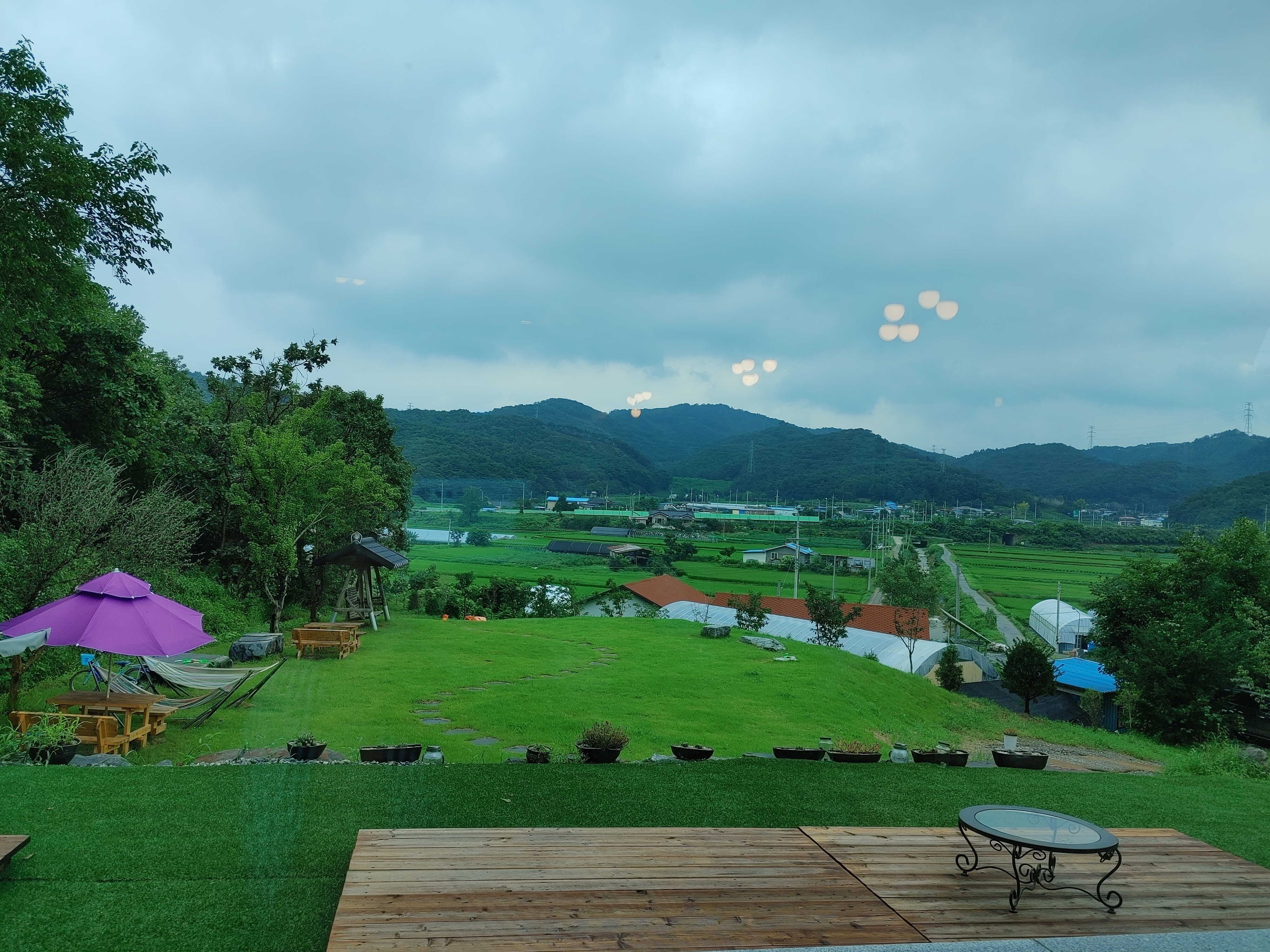 우리가 앉은 테이블에서 보이는 창밖 뷰~ 날이 흐려도 초록초록 너무 아름다웠다.