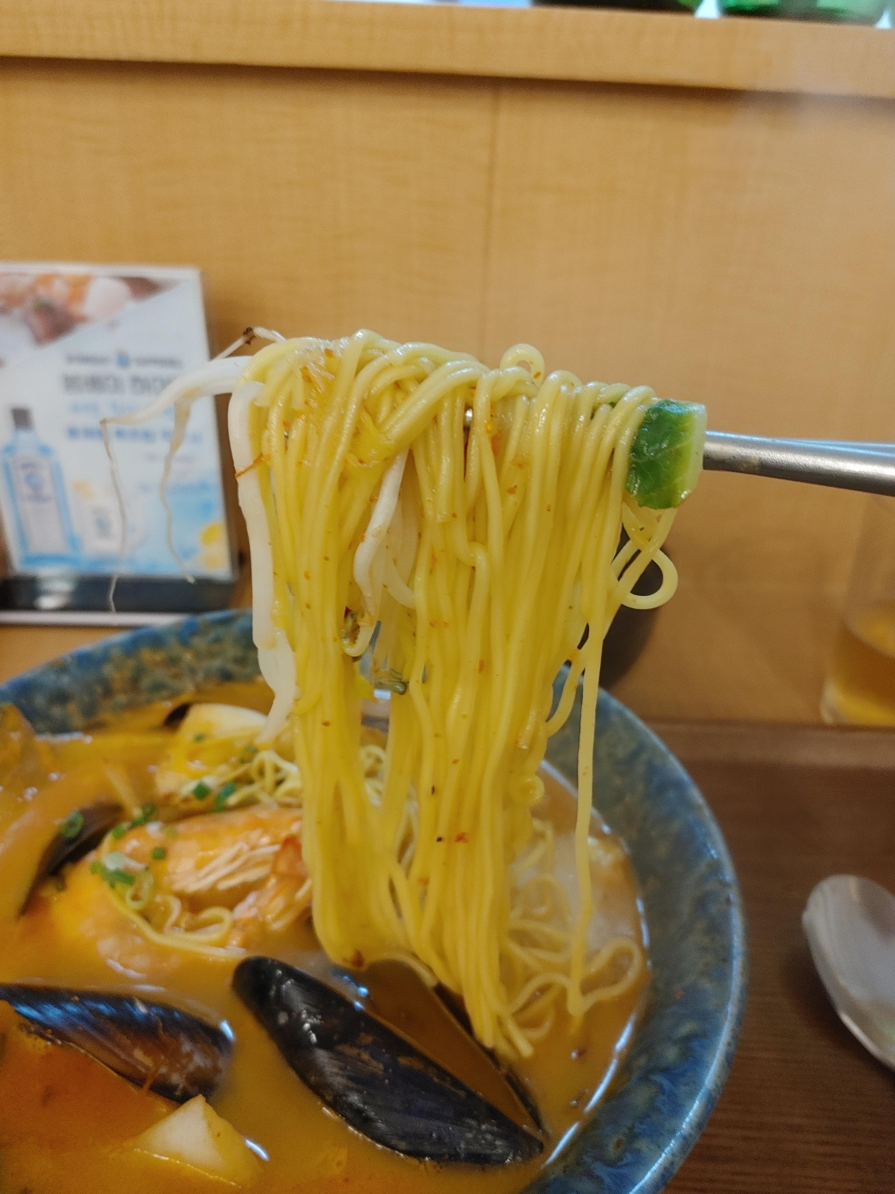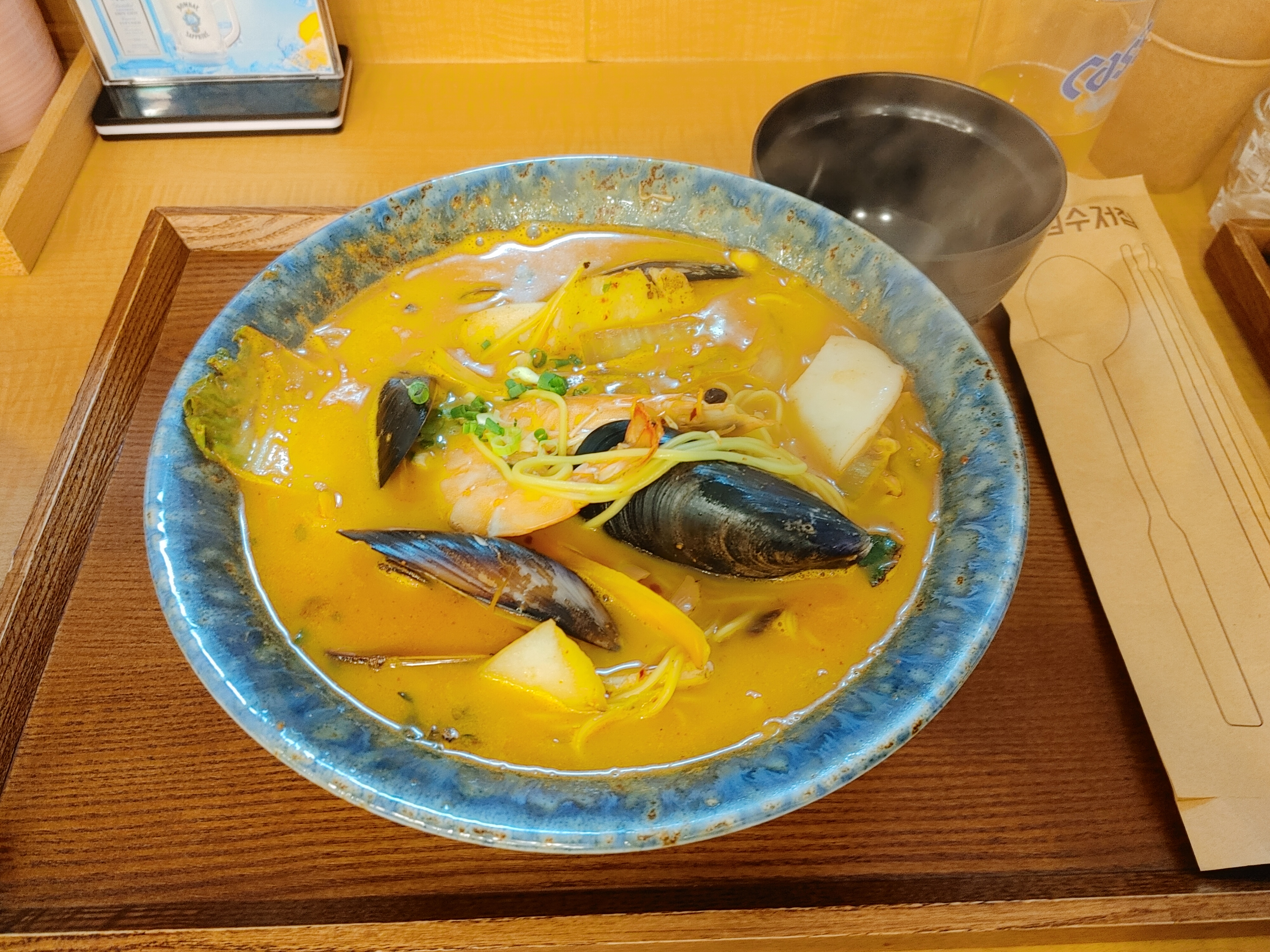 국물이 은근히 맵고 감칠맛 나서 맛있었다. 홍합, 새우, 오징어 등 해산물이 풍부하게 들어 있었다.
