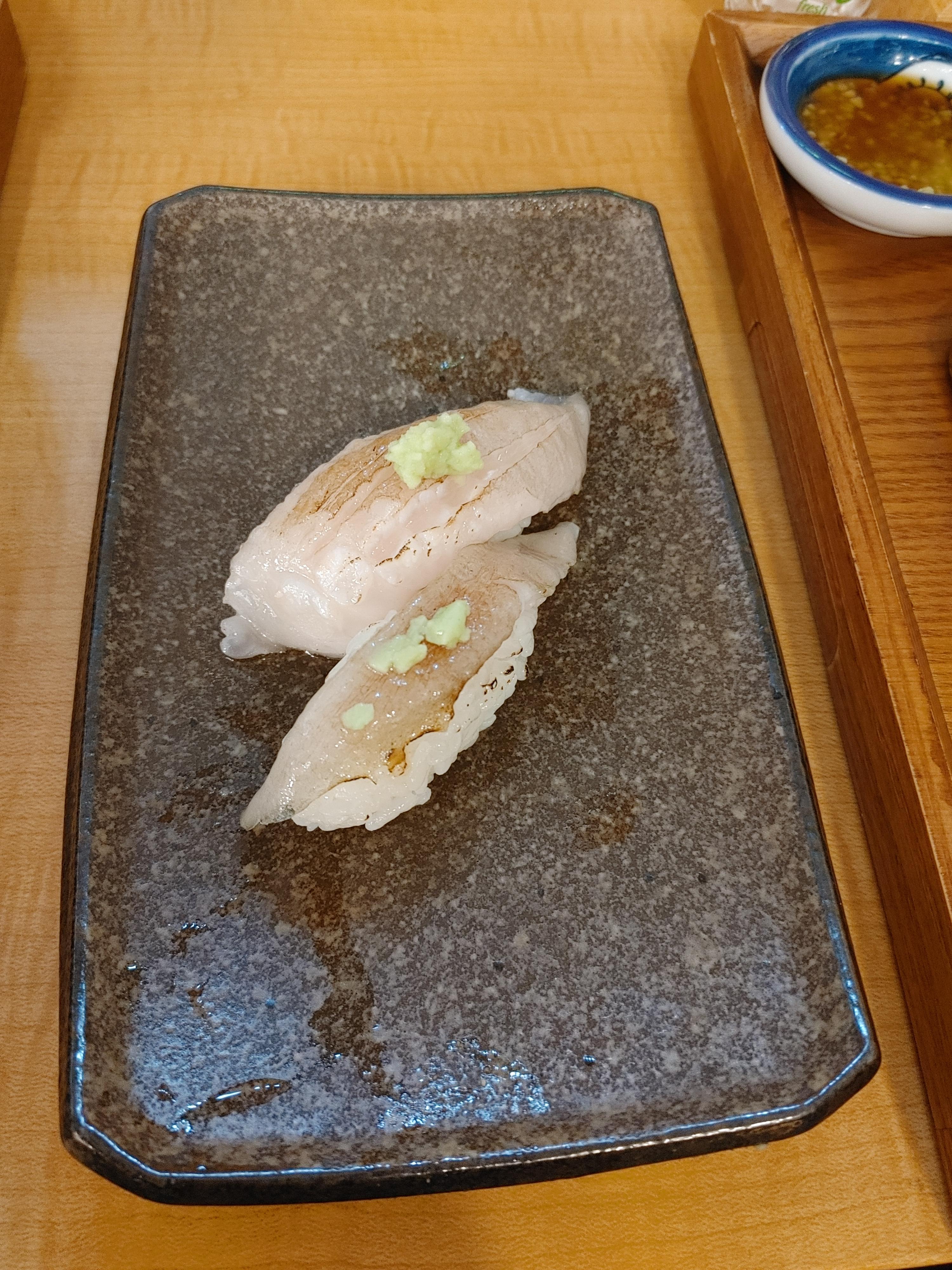 다찌 자리에 앉아 맛있게 먹고 있는데 주방에서 서비스가 나왔다. 요리사님이 무슨 생선, 어디 부위라고 설명해주셨는데 기억이 안 난다. 기억나는 건 그저 친절하고 맛있었다는 거...^^♥