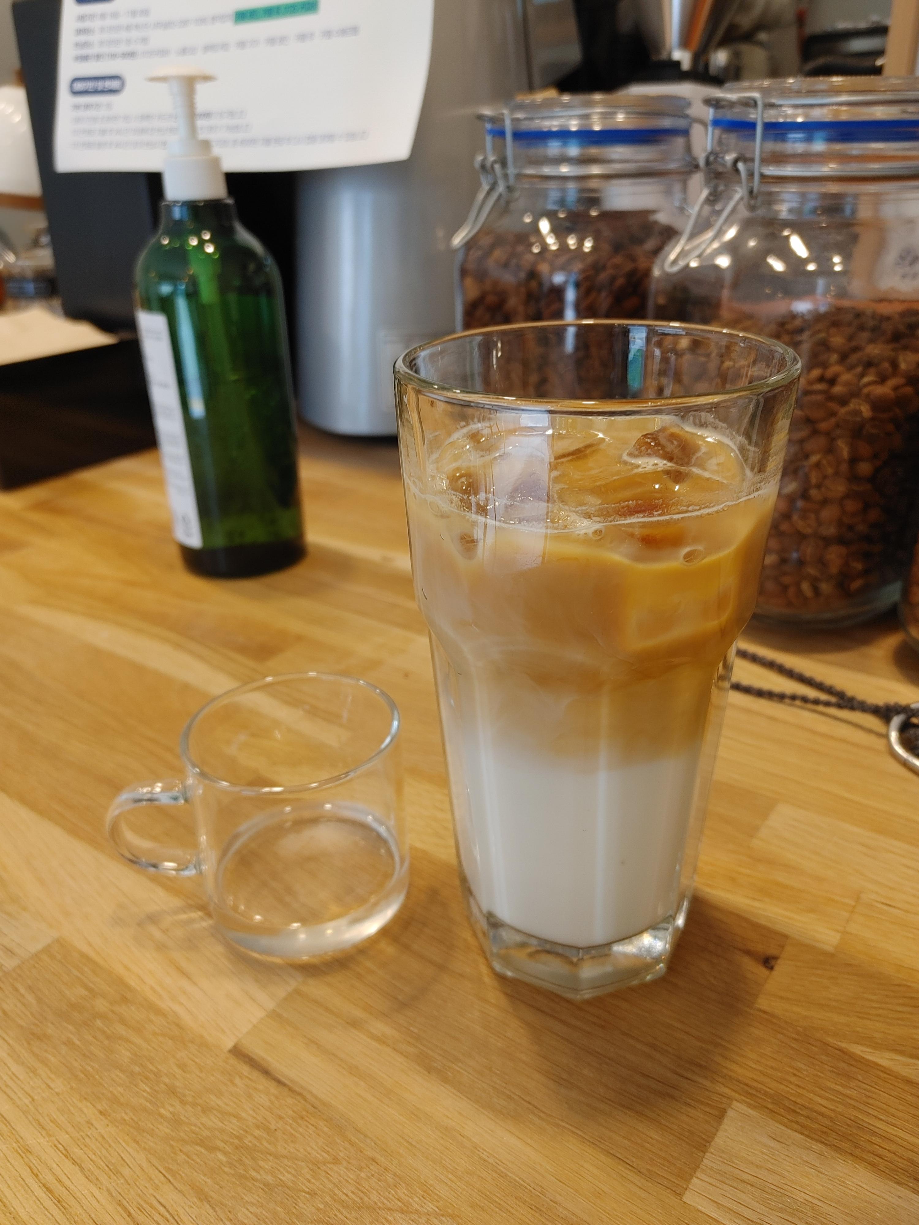 카페라떼 아이스에 설탕시럽 추가를 요청드렸다. 커피 본연의 맛을 느껴보라며 시럽을 따로 주셨다. 사장님 센스 굿.👍👍