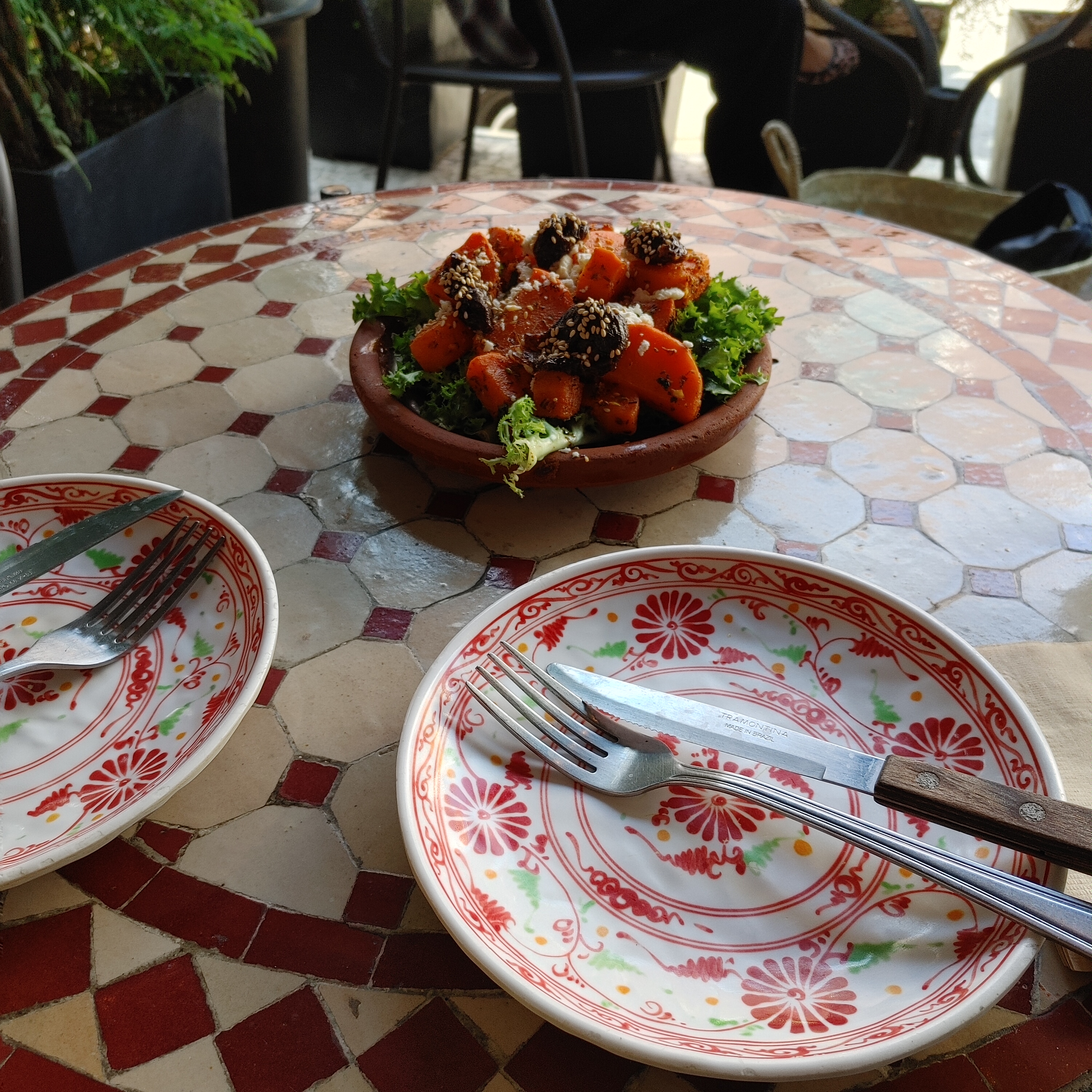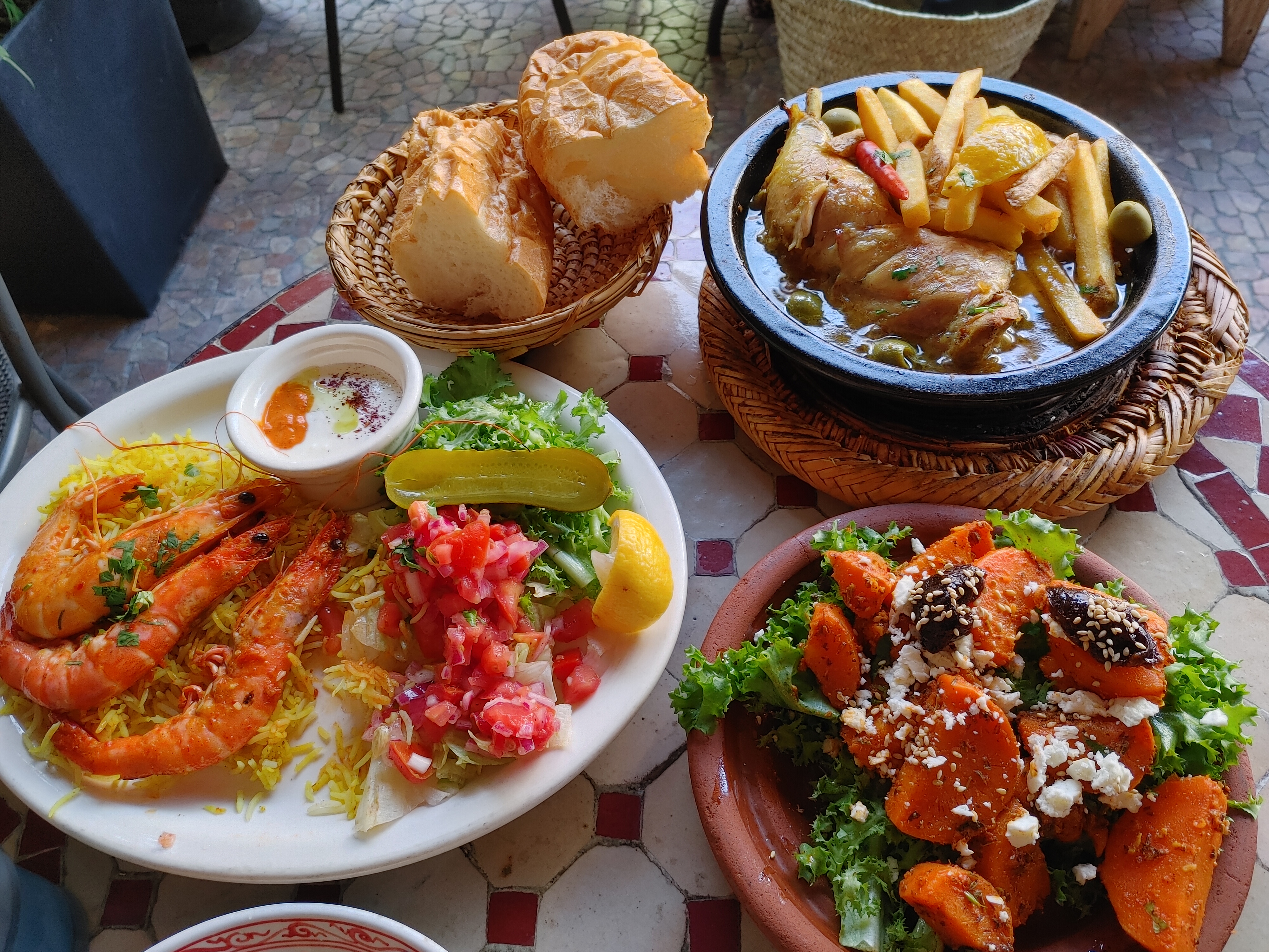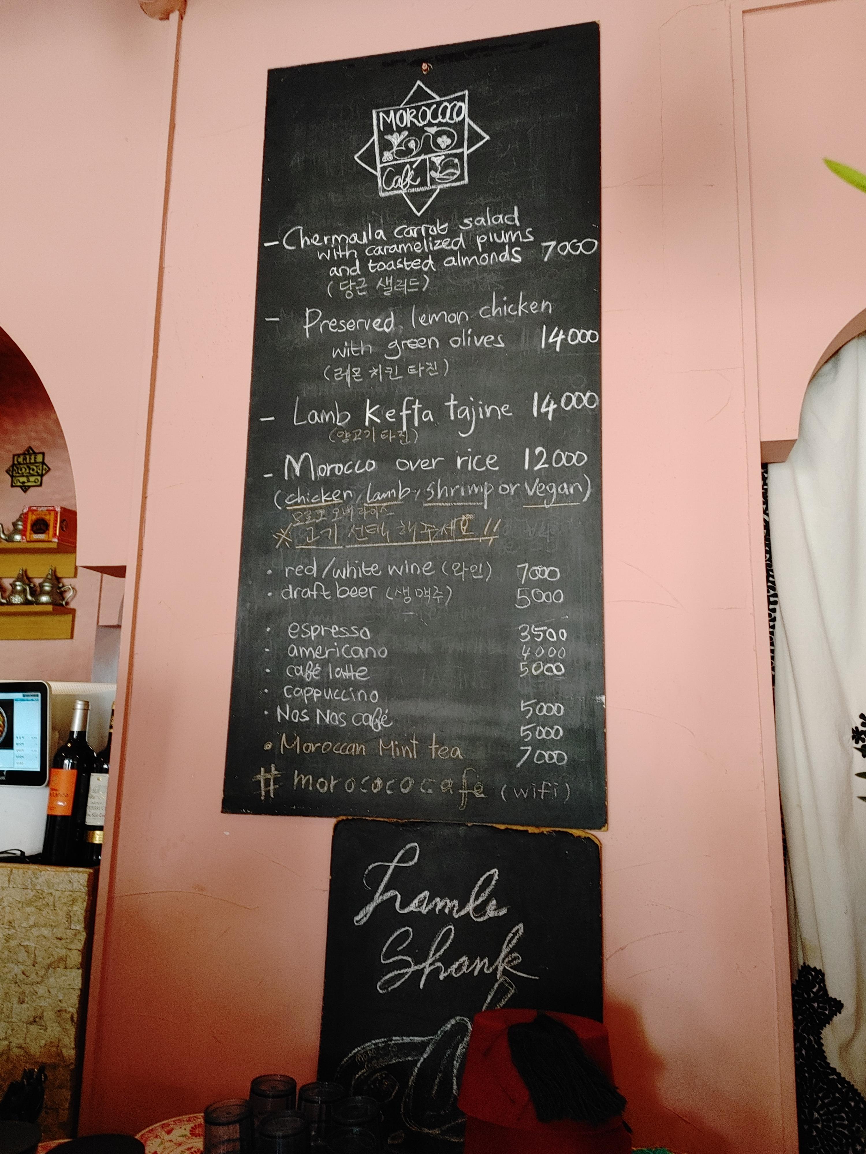 메인 메뉴는 간단했다. 당근 샐러드, 레몬치킨 타진, 양고기 타진, 모로코 오버 라이스가 있었다. 모로코 오버 라이스는 토핑(양고기, 새우, 치킨, 비건 중 택 1)을 선택할 수 있었다.