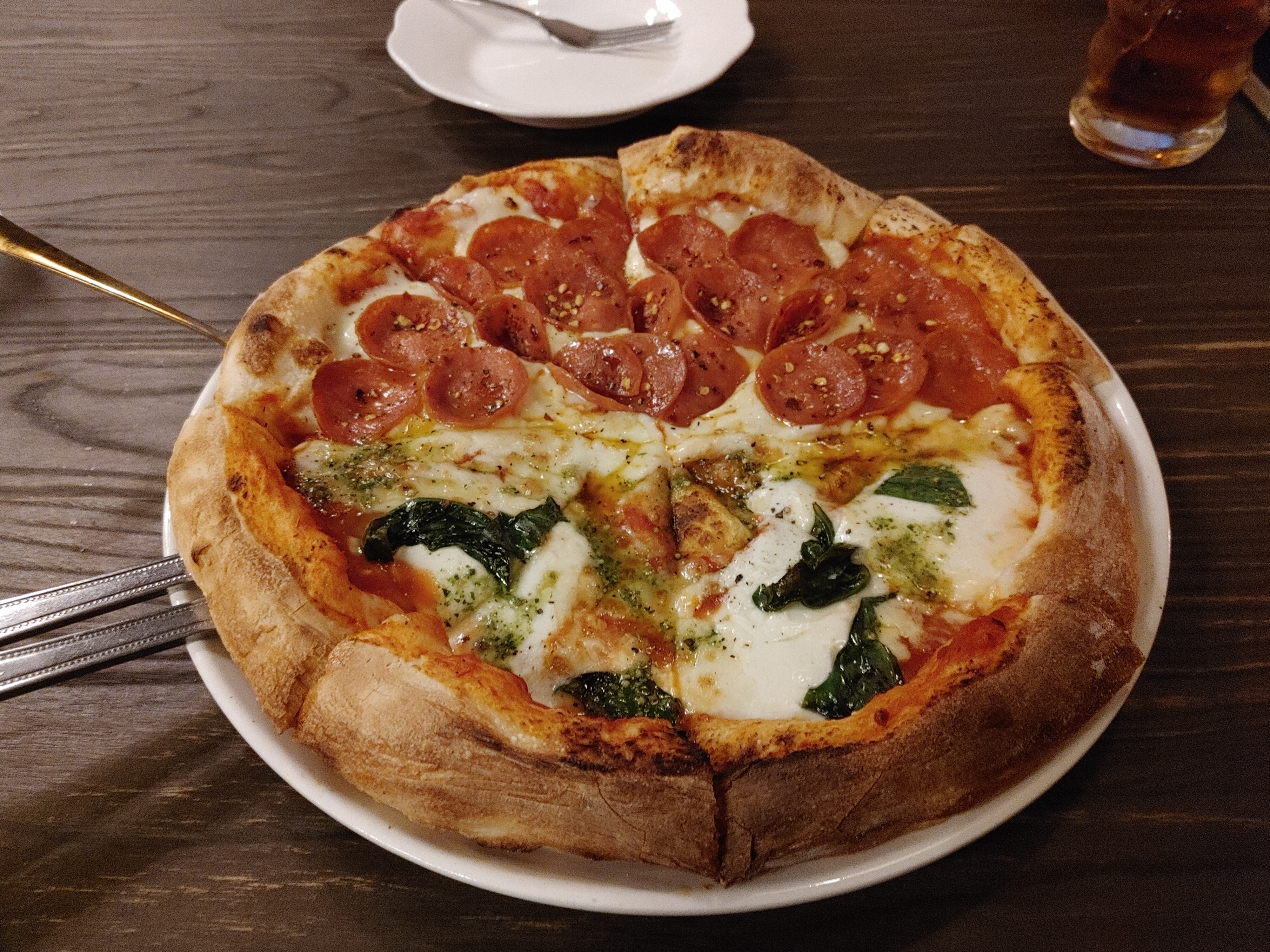 안주는 피자를 주문했다. 마르게리따 & 페퍼로니 반반 피자로 주문했다. #마곡피맥