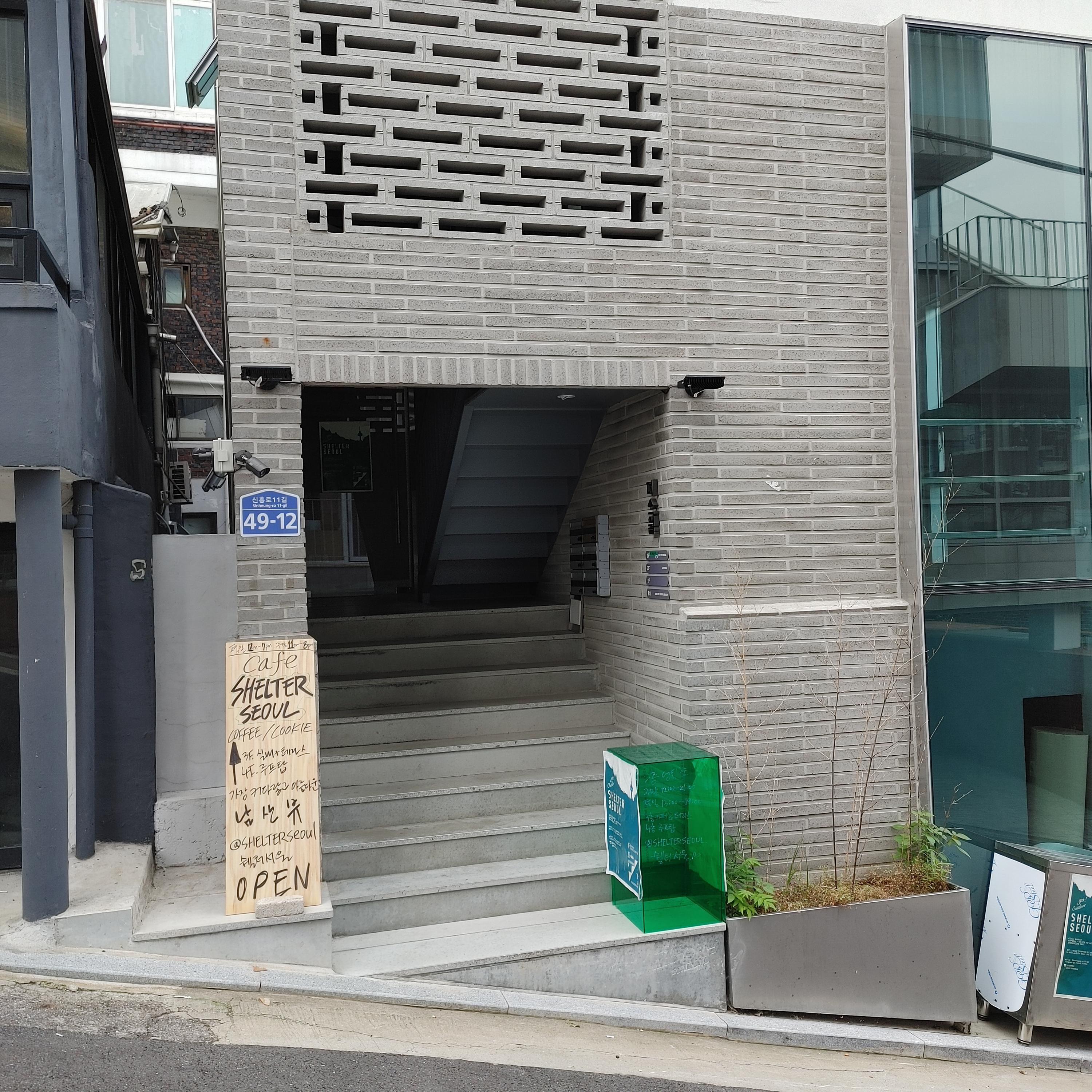 지은 지 얼마 안 된 건물 3층에 위치한 쉘터 서울. 엘리베이터가 없었던 것으로 기억된다.