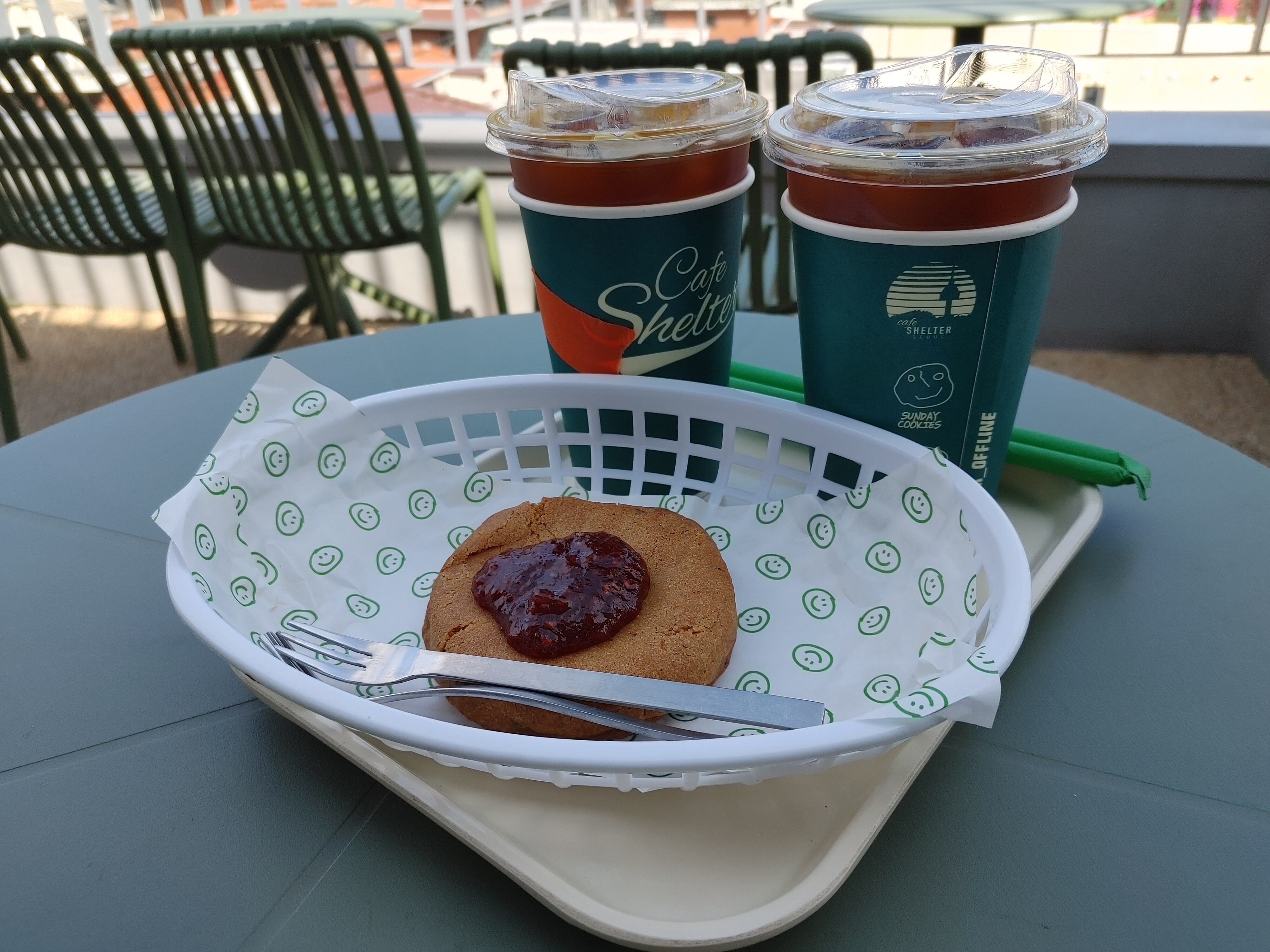 쉘터 시그니처 메뉴들이 궁금하긴 했지만 식후 아아가 당겨서 아이스 아메리카노를 주문했다. 쇼케이스에 있는 쿠키와 같이!