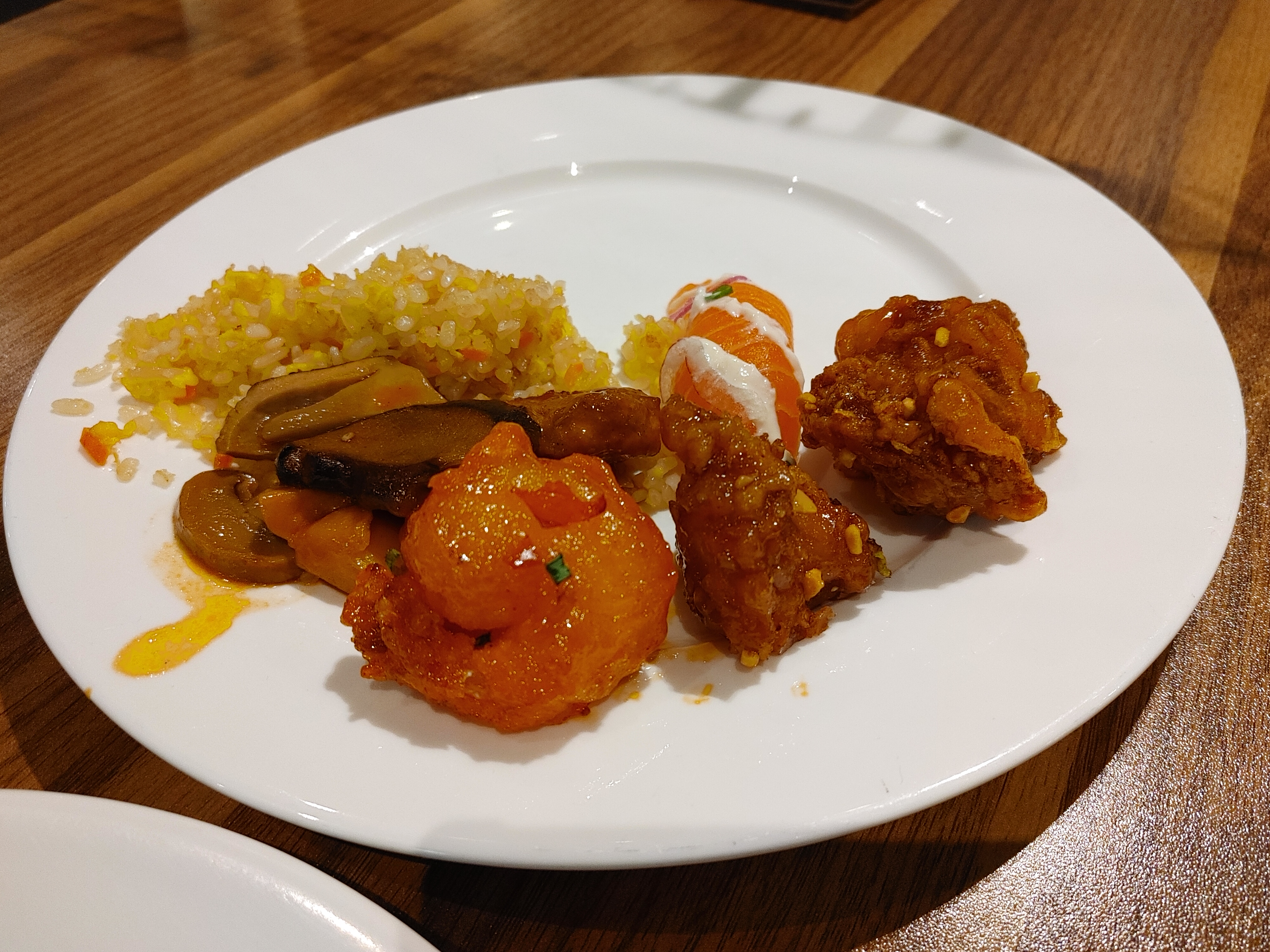 깐쇼새우, 닭강정, 연어초밥도 괜찮았다. 그런데 이런 메뉴들은 쉽게 배가 차서 많이 못 먹었다.