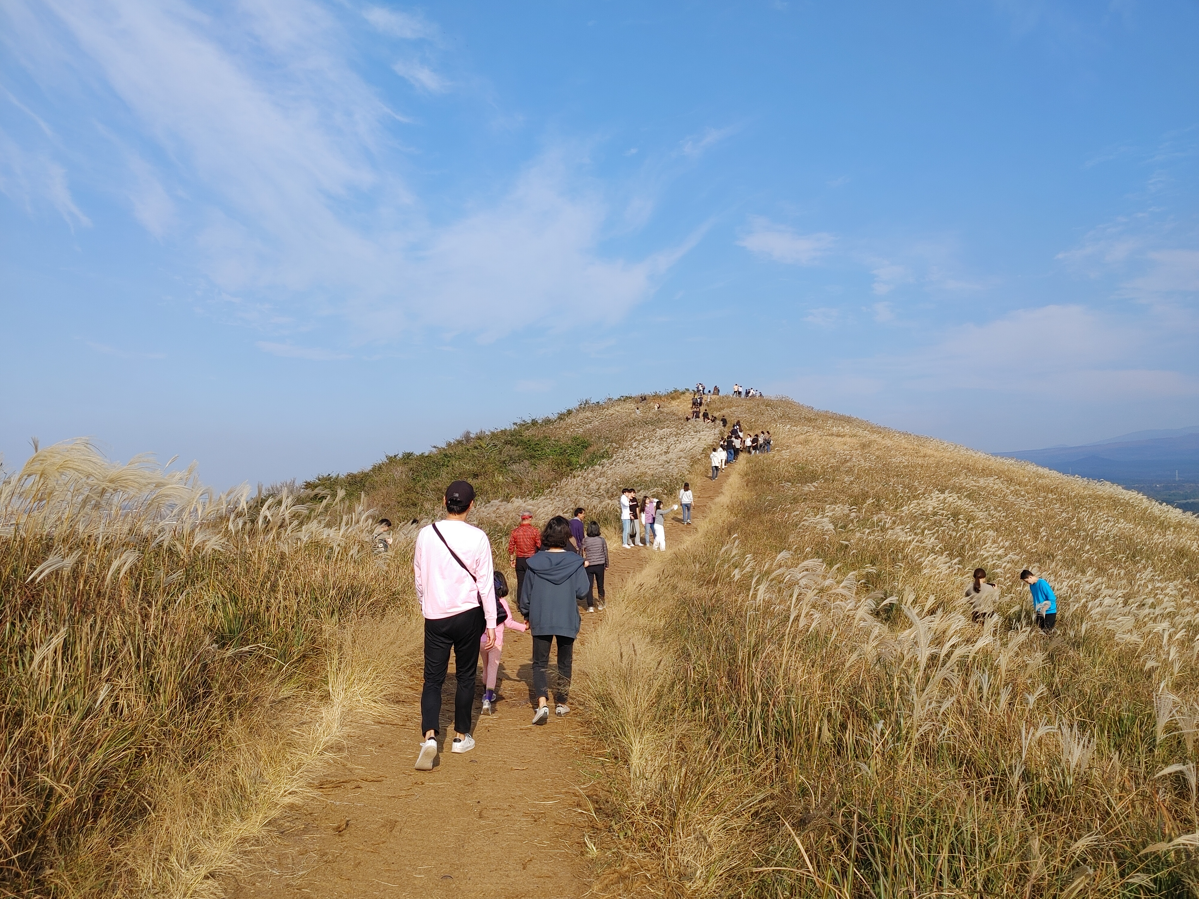 바람에 살랑살랑 흔들리는 억새들. 제주 오름 중 가을에 가기 제일 좋은 오름인 거 같다.