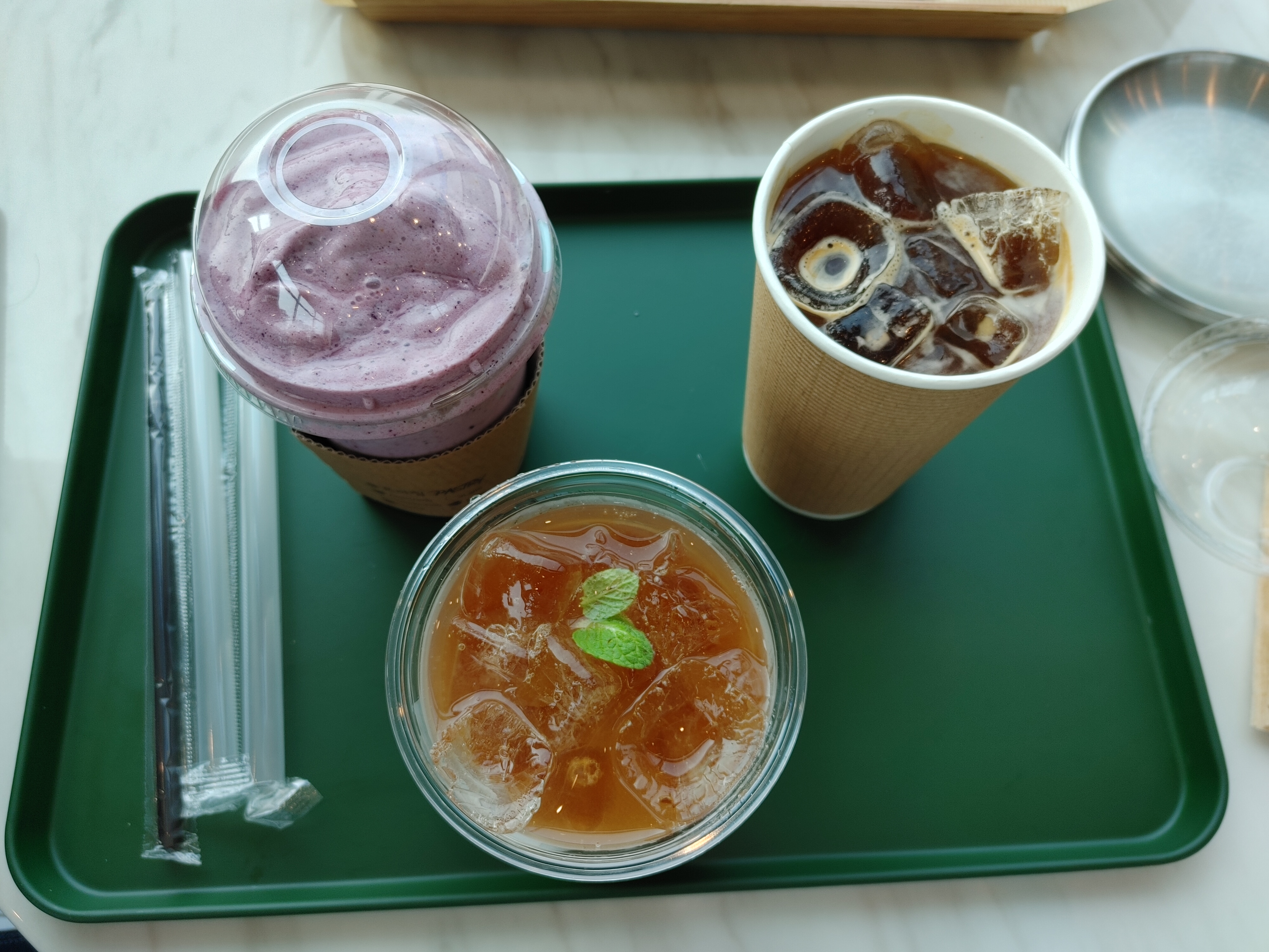 음료는 블루베리 스무디, 아메리카노, 복숭아에이드. 다 맛있고 양도 많은 편이다.