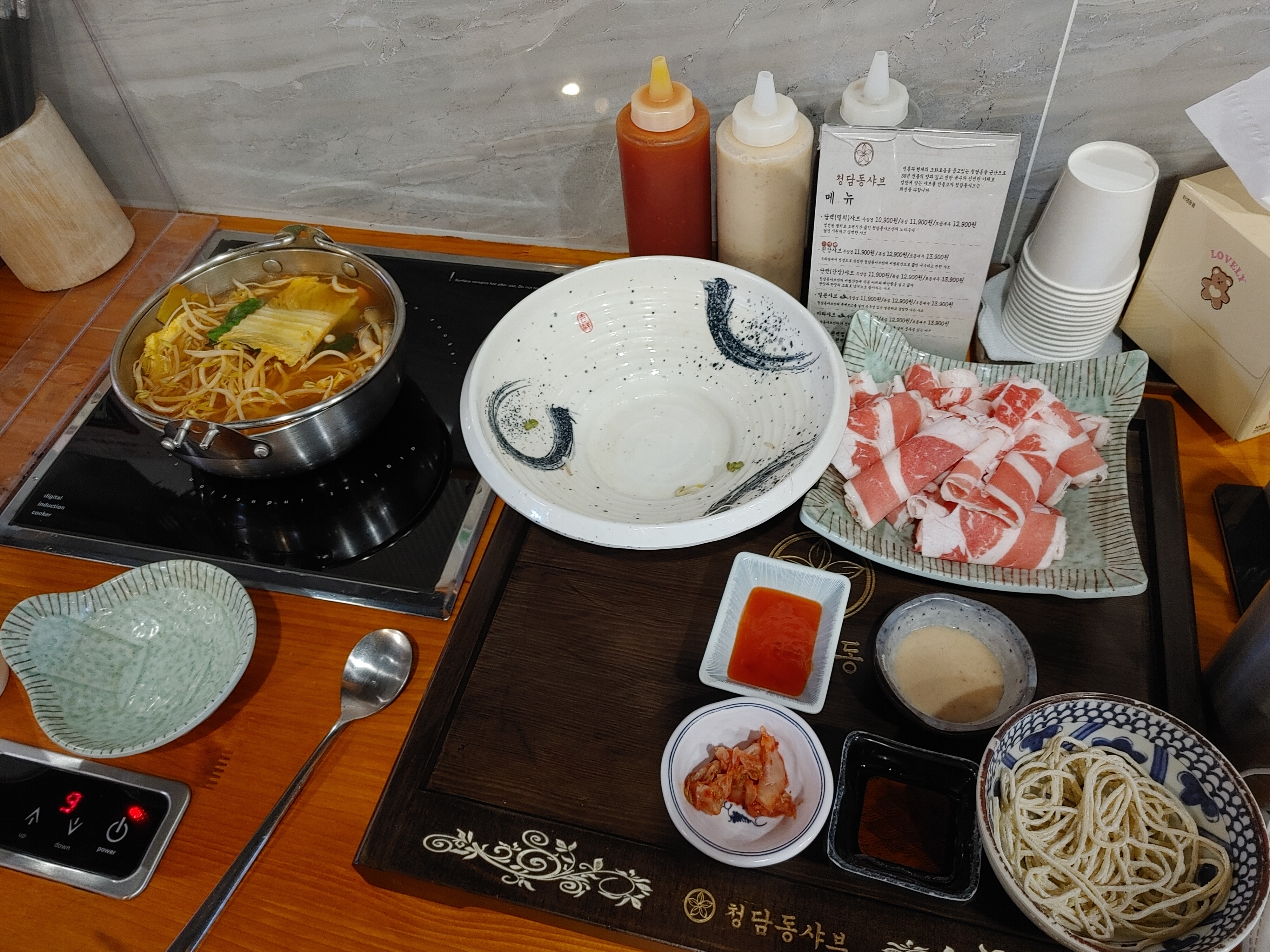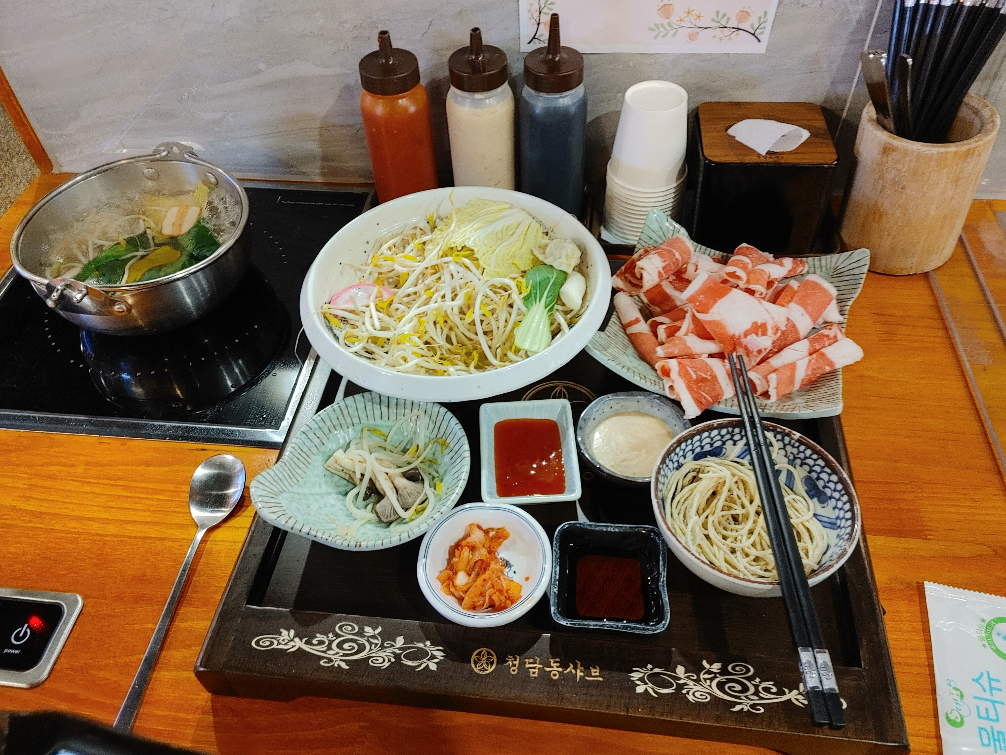 홍성터미널 4층 시티아일랜드 식당가를 돌다가 청담동샤브에 들어갔다. 다른 식당들은 손님이 별로 없었는데 청담동샤브랑 회전 초밥집엔 사람이 많았다.