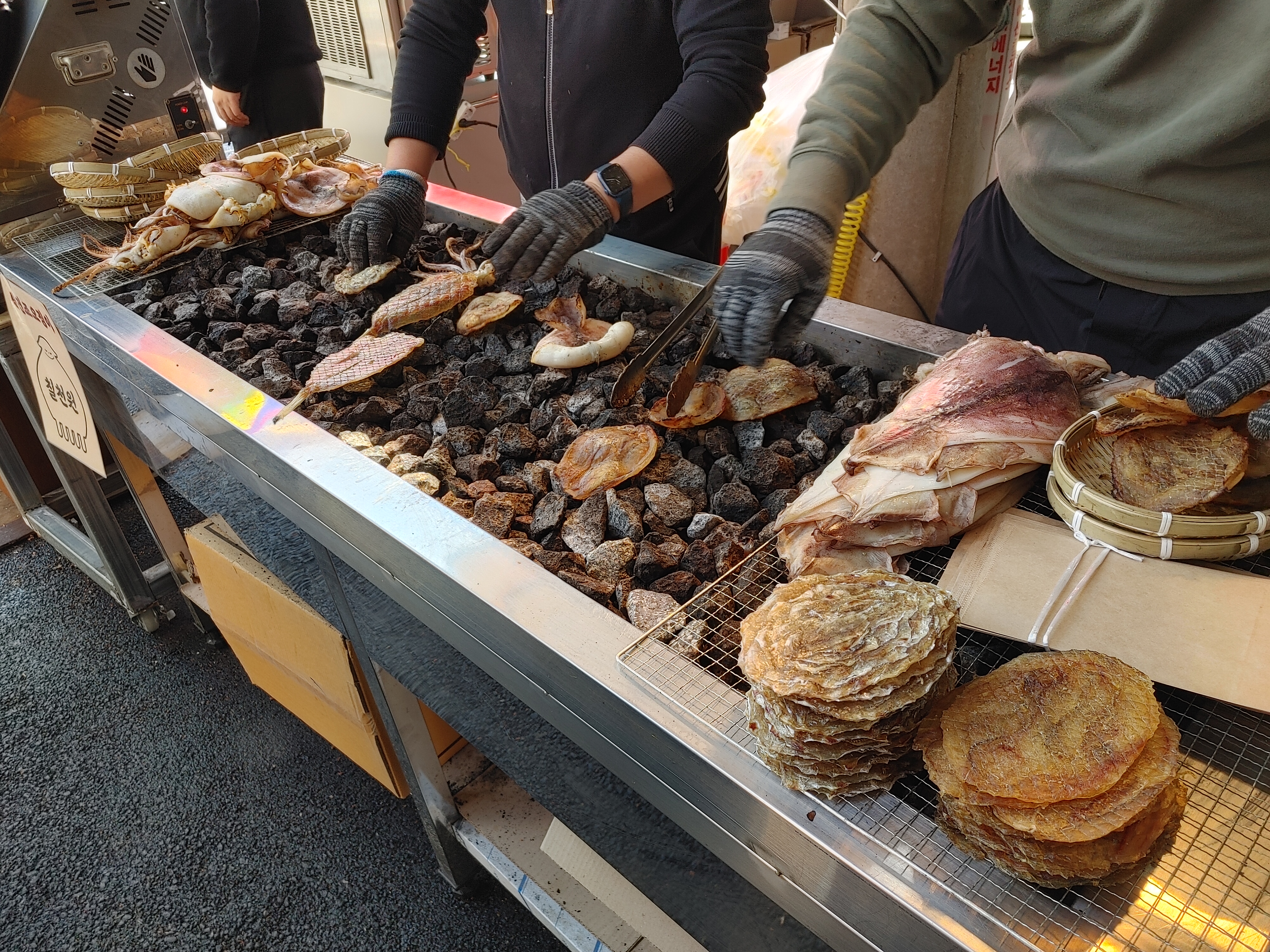 예산 시장 입구 앞에서 파는 건어물 맥반석 구이 집에서 아구포를 사 먹었다. 1마리에 3,000원. 진짜 맛있었다.