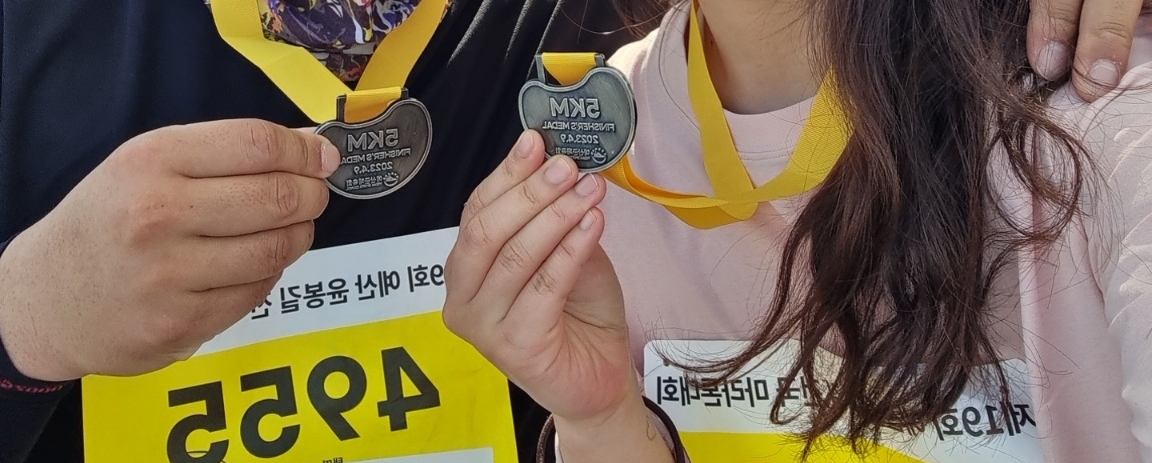 금오대로를 달려 아리랑삼거리 반환점에서 돌아서 오면 된다. 5km는 짧은 편이지만 그래도 힘들다. 뛰다 걷다를 반복했다. 중간에 생수도 제공하고 응원도 해주시는 자원봉사자들이 있어서 힘내서 달렸다. 골인 지점 근처에서 시바견과 같이 뛰는 참가자를 보았다. 시바견이 너무 귀여웠다.❤️